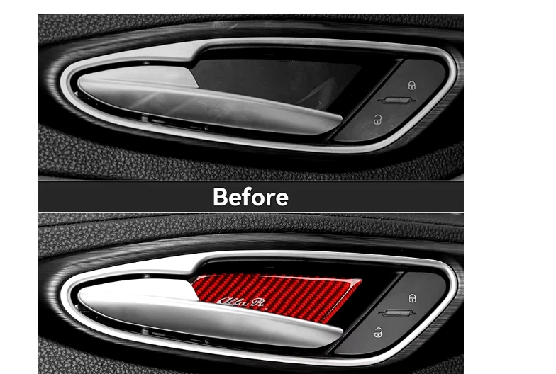 DEAR CUSTOMER, IF YOU NEED CONTACT US FIRST! NO RETURNS! THANK YOU! 4PCS Car Inner Door Bowl Cover Trim Carbon Fiber Decal Sticker fit for Alfa Giulia Stelvio 2017 2018 2019 2020 2021 2022 2023 Accessories Models: 2016-2023 Alfa Giulia Stelvio Material; carbon fiber Number of pieces; 4 pieces Mounting type self-adhesive