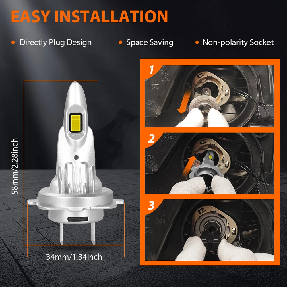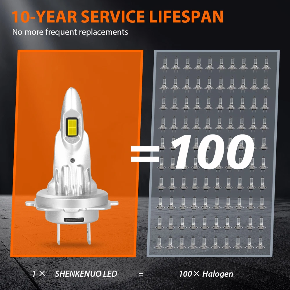 Car Light Bulb GJ Series Bulb HK Series Bulb BY Series Bulb C6 Series Bulb C9 Series Bulb S1 Series Bulb S2 Series Bulb F2 Series Bulb X7 4Side Series Bulb K9 4Side Series Bulb X15 4Side Series Bulb HID Series Bulb Other Type Bulb(Fog...etc) V5 4Side Series Bulb DF Series Bulb 6 Side Series Bulb Z4 Series Bulb LX Series Bulb DSX Series Bulb K9L 4Side Series Bulb LED Light Strip Work Light Bar Protection Sticker Car Interior/Exterior Trim Tool Promotion Other Item Description 。 H7+H7 Headlight Bulbs Specification: -Light Source:16PC 3570 LED CSP Chips -Power:100W/per bulb, 200W/per Set -Lumens:10000LM/per bulb, 20000LM/per Set -Color Temperature:6500K White -Beam Type:High/Low Beam -Certified by:CE & ROHs -Voltage: DC 9V-32V -IP Rate: IP67 Waterproof -Shell Material: 6063 Aluminum -Lifetime: More than 50000 hours -Placement on Vehicle: Front, Left, Right ● 500% Brighter: Equipped with high luminous efficacy CSP chips. 20000LM/pair, 500% Brighter than standard halogen. M12 Series LED headlight bulbs ensure the clarity of vision allows drivers easy to react to sudden movement. Effectively illuminate wildlife, falling rocks and obstacles. Huge improvement for road safety. ● Ideal Beam Pattern: SHENKENUO LED bulb features 0.12inch slim led chips distance design that almost can emit 360 degrees illumination angle. Super focused beam pattern as stock halogen lamp, no dark spots or glare to oncoming drivers, avoiding scattered light problem to ensure safety. ● 50,000 Hours Lifespan: A combination between aviation aluminum heat sink and 12,000RPM silent cooling fan design for an optimal heat dissipation. Efficient cooling system speed up heat dissipation to ensure LED headlight bulbs superior performance, lifespan up to 50,000 hours. ● 10 Mins Quick Install: Built-in driver and non-polarity plug, 1:1 same filament position as stock halogen. LED headlight mini size design for higher compatibility in factory housing. No modification required,easy installation in 10 mins. Plug & play! ● Superb Performance: CANbus ready and fit with 99% vehicles without issue. no radio interference. IP67 waterproof feature makes it work perfectly on any extreme weather, like rainy day, snowy day, foggy day, hazy weather,etc. H11/H9/H8 Foglight Specification: -LED light source: CSP LED Chips,12 SMD Chips -Luminous power: 40W -Color temperature: 6000K -Working voltage: DC 12V -Light Color: White -Shell material: space aluminum -Beam angle: 360 degrees -Working life: 50000H Package include: -4X H7 LED Headlight Bulbs -2X H11 LED Fog Light Bulbs 。 Shipping Policy Payment Method Returns Policy Shipping Policy 1) Item Located in US , We will ship all orders asap from our USA warehouse, All shipment will ship by UPS or USPS.Not include small package which less than $5. 2) Item Located in China ,We will ship from China Warehouse.( No service on Weekend and public holidays). 3) We will ship out all orders as soon as possible after payment verified, please allow up to 1-4 business days for delivery. 4) Delivery time within the U.S. is usually just 3 to 6 business days, however in rare cases it could take 6 to 7 business days. Why Choose the US Stock? 1. Us Local Shipping, No Extra Customs Cost to the US. 2. Fast Delivery: 3-6 Working days Delivery. 3. Best After-Sales Service!!! Payment Method We accept PayPal only. Payment must be made within 4 days of auction closing. (Non-payment may result in a UPI