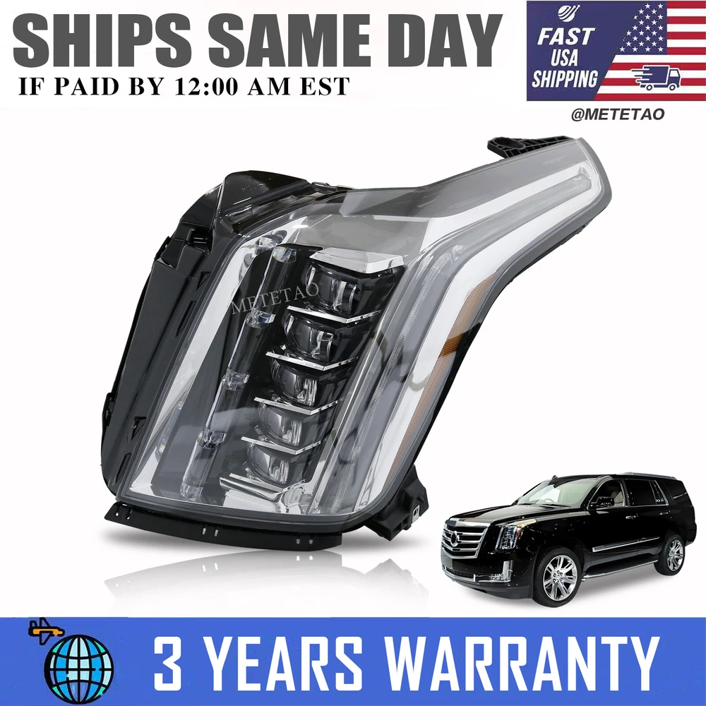 For Cadillac Escalade 2015-2020 Driver Side Headlight Lamp Led Left Front Bumper Headlight Assembly Fitment: For Cadillac Escalade 2015-2020 Item Description: Type :Fog Light Assembly Condition : 100%New Lens Color :Clear Housing Color :Black Lighting Technology:LED Fitment Type: Direct Replacement ATTENTION !!!! Please check carefully whether it matches your model !!! The vehicle compatible chart on eBay is not 100% accurate, sometimes there may have Split year issues. The best method is to verify the original number! Generally , the number is marked on the inner surface of the original part. If you have any questions about the product, please contact us. • We are proud to offer you the best price and fastest service for all your aftermarket parts needs. • In order to keep our good service, we have the following purchasing policies. Note • Due to objective reasons related to the equipment, there may be certain color deviations between the products we provide and the actual objects. We apologize for any inconvenience caused and kindly request your understanding. • We only warranty cost of parts. Any installation or other fees are non-refundable. • If the buyer needs to cancel or return the item, the buyer must begin the transaction in My eBay We depend on our customer satisfaction to succeed • If you are satisfied with the item, please take a moment to reward our efforrs by leaving us a "POSITIVE FEEDBACK" and perfect "5 STAR" scores. • If you intend to leave a neutral or negative feedback, please contact us firstly, so that we can satisfactorily address your concerns and rectify any issues. • Thank you for contacting us through Ebay Message. • We shall respond to your inquiry within 24hrs during business hours,if no response within 24 Hours,please check the spam in your mail box. Returns • We're here for you! • We are proud to offer quality service and free-worry. Payment Shipping Returns Policy About us Contact us Payment We accept payment of Credit Card, Debit Card, Gift Card, Apple pay, Google pay, Paypal and Paypal credi Item will be shipped immediately on the same or next business day of receiving full payment. Shipping Shipping within the 24H Contiguous United States Large items we ship with UPS/FEDEX UPS/FEDEX Tracking Number will be uploaded automatically in the "VIEW ORDER DETAILS" Returns Policy All of our items are tested and are fully working unless otherwise stated in the Listing Actual Images of item are shown above All sales are final. If there is an issue with the item under your normal using, we will replace it within warranty time. Terms & Conditions It is the sole responsibility of the buyer to verify the above fitment recommendations and part number compatibility prior to purchasing. The above fitment specs are a result of an abundance of in depth research. I am confident that the information is very precise, but I do not guarantee them to be accurate. If you purchase an item that is not compatible with your specific application, there are no returns, all sales are final. Furthermore, I am not responsible for improper fit, or anything associated with it such as installation fees that the buyer incurs. We are not responsible for any return or exchange after the warranty period has expired. No exceptions. The return policy is a little different for different circumstances: If we send you the wrong item or the item is damaged the time you receive it, we will cover all the costs associated with return or exchange. But it is required that you provide a photo to show us the problem first. All the return/exchange items must be in original package. All NON-seller mistake returns for refund ,buyer should pay for the return costs. (E.g. purchases the wrong item by mistake and doesn’t like the item or no longer need the item ) About us We are US located Seller. We try our best to represent our items but are still humans and sometimes mistakes may happen. Please do not be quick to judge us through our feedback system but contact us via ebay, we will fix the issue right away. Our Feedback is very important to us and we strive for a 5 star from every buyer. Contact us Customer Service Hours: Monday-Sunday 9am-10 pm Brand METETAO Lighting Technology LED Type Headlight Assembly Placement on Vehicle Front, Left Features DOT-Certified Housing Color Black Lens Color Clear Items Included Bulbs Manufacturer Part Number 84216044, 84580182 OE/OEM Part Number 84216044, 84580182 Number of Bulbs does not apply Light Color Cold White Bulb Shape Code does not apply