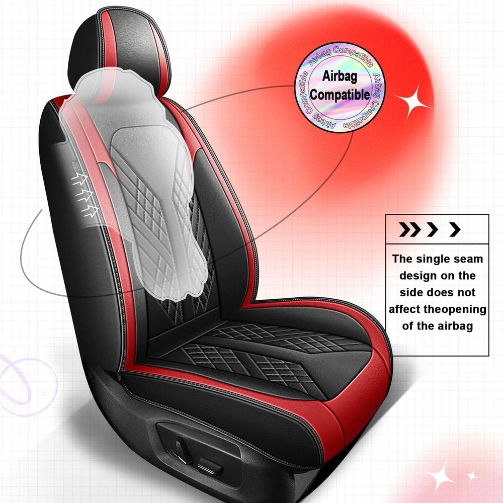 【Notices】 The picture is for reference only, the product will be shipped according to your specific model! After placing the order, please send us an email to inform us of the specific model and seat picture 【Features】 High Quality Seat Covers: Faux leather is durable, breathable, comfortable and has good waterproof. The interior of the seat cover is filled with sponge, the appropriate thickness allows you to sit for a long time without getting tired. Seat Protector Easy to Clean: Environmental protection, no toxic gas volatilization with scratch-resistant leather. Wipe clean easily with just a damp towel, keeping your seat protects from stains, spills and damage. Safety Leather Car Seat Covers: The front seats have airbag reserve ports on the side to ensure that the airbags can be popped out in case of emergency. The rear seat belt slot also completely exposed. Flame retardants are added to the leather, which will not burn even if it encounters a fire. Seat Cover Set Easy Installation: The package comes with an installation manual, please read it before you start the installation and you will be able to do it easily even if it is your first time. 【Specification】 Product Type : Car Seat Cover Color : Black+Red Material : Faux Leather Apllicable season : All seasons Fitment : Fit For Chevrolet Equinox 2011-2024 【Package Include】 2 Front Seat Covers 1 Set of Rear Seat Covers 5 Headrest Covers 1 Bag of Accessories for Installation 1 Intruduction Manual of Installation