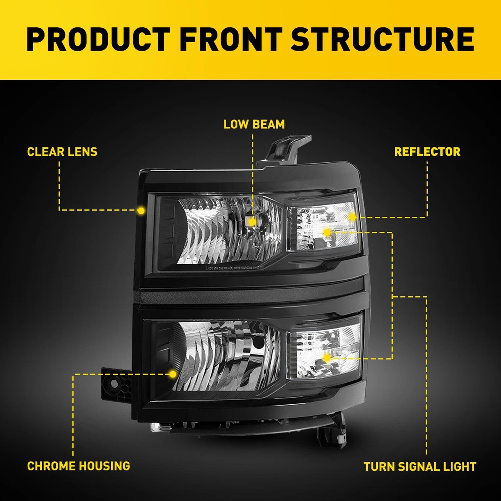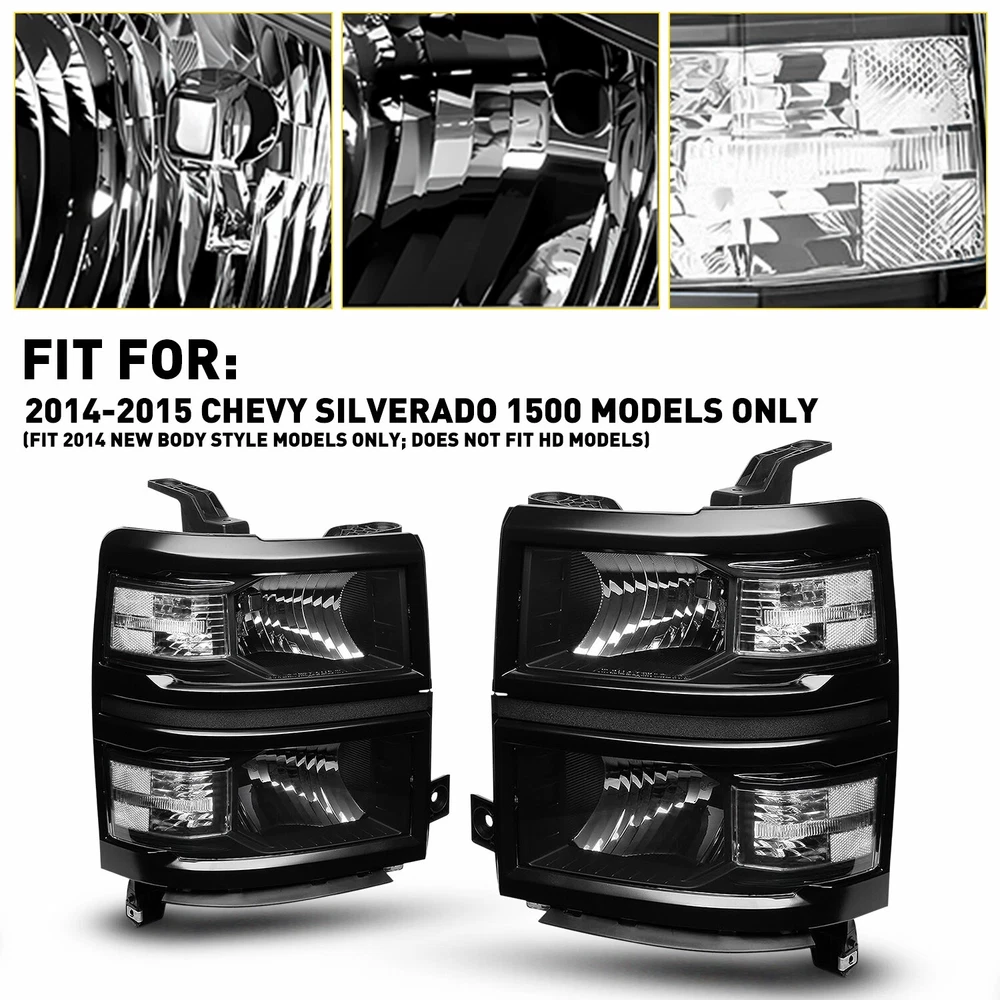 Headlights Headlamps Fit For 2014-2015 Chevy Silverado 1500 models only Fit for: 2014-2015 Chevy Silverado 1500 Models Only (Fit 2014 New Body Style Models Only; Does NOT Fit HD Models) Specifications: OE number: 20933724, 20933725, 20933722, 20933723, 23172782, 23172783 GM2502389, GM2503389, GM2502395, GM2503395, GM2502410 Material: ABS+PC (ABS Plastic Housing/Polycarbonate lens) Appearance color: 1.Housing Color: Black 2.Lens Color:Clear 3.Reflector Color:White Note: Projector ×(Not include) DRL ×( Not Include) For Chevy Silverado 1500 2014-2015 Pair Black Headlights Headlamps Assemblies Headlights Headlamps Fit For 2014-2015 Chevy Silverado 1500 models only Fit for: 2014-2015 Chevy Silverado 1500 Models Only (Fit 2014 New Body Style Models Only; Does NOT Fit HD Models) Specifications: OE number: 20933724, 20933725, 20933722, 20933723, 23172782, 23172783 GM2502389, GM2503389, GM2502395, GM2503395, GM2502410 Material: ABS+PC (ABS Plastic Housing/Polycarbonate lens) Appearance color: 1.Housing Color: Black 2.Lens Color:Clear 3.Reflector Color:White Note: Projector ×(Not include) DRL ×( Not Include) Bulb × (Not include) Features: *Easy to install: Direct replacement, drilling and cutting are not required. *Superior quality: Made of ABS and PC materials with toughness and heat resistance functions to ensure its long service life and durability. *Angle adjustment: Equipped with a headlamp Angle adjustment knob, you can adjust the best Angle of view through the knob. *Suggestion: 1.Please confirm the OE number before purchasing!!! 2.Professional installation is required!!! Packaging include: Headlights*2(Left+Right) ABOUT US For Chevy Silverado 1500 2014-2015 Pair Black Headlights Headlamps Assemblies Headlights Headlamps Fit For 2014-2015 Chevy Silverado 1500 models only Fit for: 2014-2015 Chevy Silverado 1500 Models Only (Fit 2014 New Body Style Models Only; Does NOT Fit HD Models) Specifications: OE number: 20933724, 20933725, 20933722, 20933723, 23172782, 23172783 GM2502389, GM2503389, GM2502395, GM2503395, GM2502410 Material: ABS+PC (ABS Plastic Housing/Polycarbonate lens) Appearance color: 1.Housing Color: Black 2.Lens Color:Clear 3.Reflector Color:White Note: Projector ×(Not include) DRL ×( Not Include) Bulb × (Not include) Features: *Easy to install: Direct replacement, drilling and cutting are not required. *Superior quality: Made of ABS and PC materials with toughness and heat resistance functions to ensure its long service life and durability. *Angle adjustment: Equipped with a headlamp Angle adjustment knob, you can adjust the best Angle of view through the knob. *Suggestion: 1.Please confirm the OE number before purchasing!!! 2.Professional installation is required!!! Packaging include: Headlights*2(Left+Right) FAQ Shipping Returns Contact Us Payment Why swith to LED? LEDs not only give your vehicle a clean, modern look but, with proper use, will outlast any halogen bulb and HID bulb! Low energy draw, high lumen output, and instant on/off LED technology out shines stock bulbs in every way. Which bulbs are used in my vehicle? Check Sylvania automotive lamp replacemnt guide , you can select the year, make, and model of your vehicle, then select the application you want to replace or upgrade from stock. What does CAN Bus mean? CAN Bus means Controller Area Network Bus. This system monitors your vehicle and reports operating conditions. CAN Bus systems are commonly found in European vehicles such as BMW, Audi, Mercedes, Volkswagen, Porsche, and in many American vehicles. While most late model American vehicles have CAN Bus systems, it is always good to check with your vehicle dealer to see which system your vehicle has before purchasing electrical products. When do you need Warning Canceller? Some vehicles with cmplex internal computers(such as Audi,BMW,Jaguar,Mercedes,etc.) might report on-dash errors or flickering on the headlights. The warning canceller fixes the dashboard warning and flickering effect. Bulb Out Dashboard Error: On some vehicles, the dashboard will report as if you have a headlight bulb missing or burnt. It does not affect the headlights functioning, but the light on-dash will be on. The warning canceller fixes the issue. Flickering Issue: This happens when your vehicle does not recognize the new headlights installed. When turning the headlights on, the vehicle's computer does not understand the signal back from the headlights hence thinking they are still off. This triggers the headlight flickering effect. The warning canceller solves this issue. LED Advantages: Very low and efficient energy consumption than halogen bulbs & HID Bulbs Compared with HID bulbs, LED bulbs Light up instantly, no warm up period Low voltage protection, high precision constant current driver chip Longer lifespan than HID and halogen bulbs Light can be controlled easily in color and intensity Easy to install a LED headlight conversion kit (1) We will ship your item(s) within 24 hours. (2) We ship this item to US only via USPS first class mail. It usually takes 3-6 working days to deliver. How Long Will It Take to Receive My Refund? If you have emailed us for a refund ,once we have approved it ,after 60 days your money will be refunded. The estimated time for the refund to appear in your account is based on the payment method you use. Paypal is the only supported in NIGHTEYE Store. Please notify us within 30 days after you've received your purchased item. All return requests must be submitted through your eBay account. NOTE: Buyers pay for the return shipping fee. Items to be returned must be in resalable condition, for example: You do not satisfy the item quality Item do not fit your vehicle perfect Item can not reach your expectation The item arrived be broken You do not receive the item Parcel Lost Receive the wrong item If you have problems with the above issue, please Contact Us immediately ! [Our office hours are MONDAY - Saturday 9:00PM - 6:00PM PST, but we will response yo