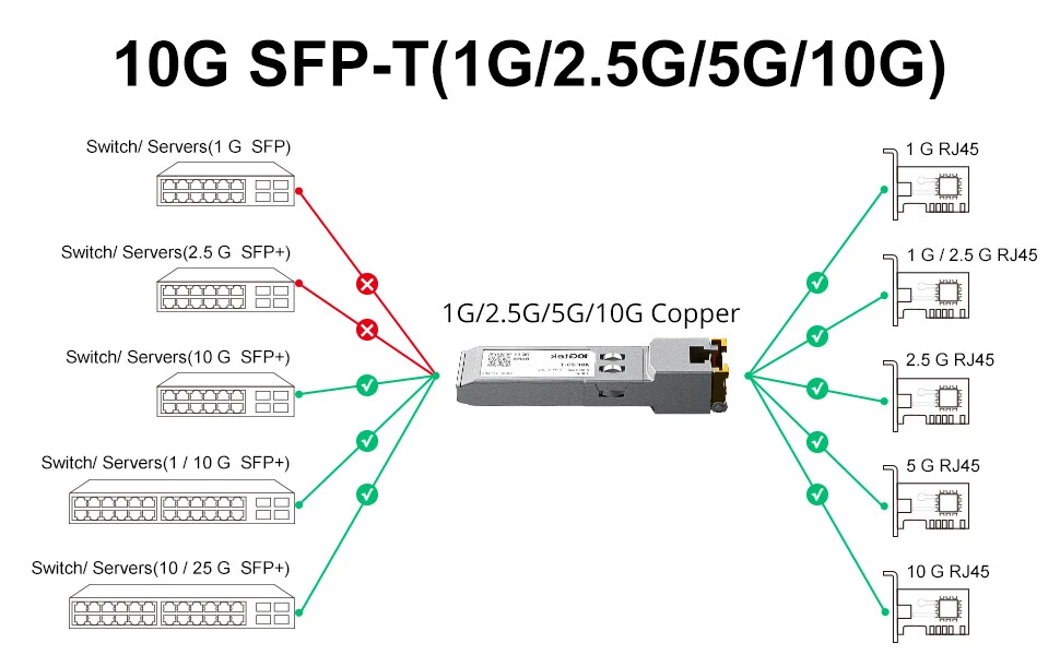 For Cisco SFP-10G-T-X Module, 10G SFP to RJ-45 Copper, 10GBase-T, 1/2.5/5/10Gbps