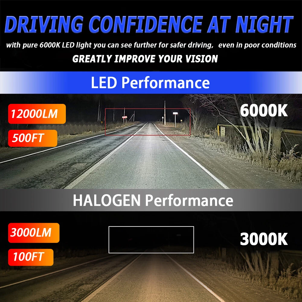 Item Description Product Feature: ✅ 500% Brighter Than Halogen: Top Automotive-Grade LED chips with 80W, 8,000LM in total, 6000K cool white. Super focused beam pattern design provides a wider and farther lighting range which is 3 times brighter than your original halogen bulb. ✅ Over 5,0000 Hours Lifespan: Whole aviation aluminum body, unique hollow-carved heat sink design, and 1,2000RPM turbo cool fan provide supercooling ability, which ensures a longer lifespan of up to 5,0000 hours. ✅ 10 Minutes Easy Installation: Almost 1:1 mini design same as halogen, perfectly fit into your housing and factory sockets without any modification, just plug and play. ✅ CAN bus-Ready for 98% Vehicles: Our bulbs work with 98% of the vehicle's computer systems without error, while some sensitive models may require an additional decoder to be installed. Technical Specification: Plug Type: Hi-Lo Beam Headlight + Fog Light bulbs Operating Voltage: DC 9-32V(fit 12V,24V vehicles) Color Temperature: Pure White 6000K IP67 rated water and dust seal, over 50000hrs lifetime Beam Angle: 360 degree Material: Aviation 6063 aluminum profile Operating Temperature: -40-80 degree Celsius Usage: headlight,fog light Package Include: 2 x 9005 LED High Beam headlight bulbs 2 x H11 LED Low Beam headlight bulbs 2 x 5202 LED Fog light bulbs New and old packaging will be shipped randomly Installation Notes: 1.Asa safety precaution, make sure that the car has had time to cool down properly before starting the installation process. 2. Put the vehicle into park or make sure it is securely in gear. 3. Make sure to have the ignition turned off and the keys removed. 4. Be careful to avoid burns, especially when turning on or off the vehicles lighting. 5. Be careful to avoid crushing or cutting the bulbs. Also make sure to not touch the bulbs with your fingers, as this will cause blotting. 6. Fully examine the connection of the contact points, ports and the wires as faulty connections can cause lighting problems. 7. Make certain that the end of the bulb does not come in contact with the interior light shield of the headlight when adjusting the bulb. 8.Please install car headlight dust cover to ensure the normal operation of the lamp Shipping Policy Payment Method Returns Policy Warranty Shipping Policy 1) Item Located in UK , We will ship all orders asap from our UK warehouse, All shipment will ship by Royal Mail.Not include small package which less than £5. 2) Item Located in China ,We will ship from China Warehouse.( No service on Weekend and public holidays). 3) We will ship out all orders as soon as possible after payment verified, please allow up to 1-4 business days for delivery. 4) Delivery time within the UK. is usually just 3 to 6 business days, however in rare cases it could take 6 to 7 business days. Why Choose the UK Stock? 1. UK Local Shipping, No Extra Customs Cost to the UK. 2. Fast Delivery: 3-6 Working days Delivery. 3. Best After-Sales Service!!! Payment Method We accept PayPal only. Payment must be made within 4 days of auction closing. (Non-payment may result in a UPI being put on your account. eBay will automatically close your account if you accumulate 4 UPI's total.) TOTAL AMOUNT DUE includes the final auction price plus S&H(Shipping and Handling). S&H will be determined based upon the SHIP TO address. PLEASE NOTE: S&H DOES NOT INCLUDE DUTIES, LOCAL TAXES OR ANY OTHER IMPORTATION FEES. Returns Policy 1. Customer satisfaction is our top goal. We believe our items are so outstanding. All products are quality checked. They are new and in good condition when shipped to our customers. We are convinced you will be happy with your Purchase. 2. If product is defective or damage upon arrival, or wrong product shipped, please contact us immediately. Returns accepted within 14 days of delivery date and item must be in original new condition, not worn or altered in any way with attached tags & wrap. Otherwise deal is final. Return shipping must be paid by buyer. 3. Please contact us first if you have any problems/questions/concerns. We will be happy to resolve any issues you may have in a cordial and friendly manner. 4. We appreciate your Postive Feedback, and will do the same in return. DO NOT leave negative feedback without first communication with us. Please allow max 2 business days for us to response. Warranty All of the parts have 12 months warranty !!! . Superior LED Source High performance LEDs, vibration resistant and superior illumination stability Faster on/off response time, no incandescent delay Broaden driving vision and brightness Ultra slim design provides super focused light beam, effectively simulate the beam pattern of original halogen lamp and solve the problem of focusing unevenly, super focused and max light output provide a wider and further lighting area. No glare to oncoming traffic, and no dark spots ensure a safer drive. Enhanced Beam Pattern Equipped with improved beam pattern for optimal light shape, LED headlights focuses down the road, which contributes to seeing further and clearer at night with no dark spots, no shadow areas, no glare and no blinding to oncoming drivers Superior Durability Aviation aluminum construction, top LED chips ensure a longer lifespan up to 50,000 hours, excellent waterproof and dustproof performance make it your top pick for travelling even in extreme situations. Item Description 。 Product Feature: ✅ 500% Brighter Than Halogen: Top Automotive-Grade LED chips with 80W, 8,000LM in total, 6000K cool white. Super focused beam pattern design provides a wider and farther lighting range which is 3 times brighter than your original halogen bulb. ✅ Over 5,0000 Hours Lifespan: Whole aviation aluminum body, unique hollow-carved heat sink design, and 1,2000RPM turbo cool fan provide supercooling ability, which ensures a longer lifespan of up to 5,0000 hours. ✅ 10 Minutes Easy Installation: Almost 1:1 mini design same as halogen, perfectly fit into your housing an