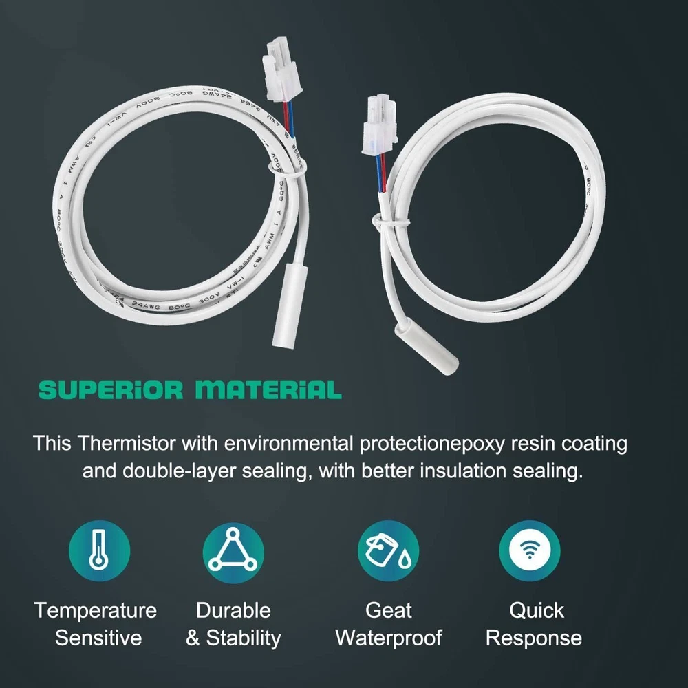 Replaces Part Numbers: Refrigerator thermostat for Dometic 3851210025 thermistor sensors. Replaces 2931863035, 2931863076, 3851059042. Applicable Model: Compatible with almost all Dometic RM,S,NDR & DM Series Models with two wire thermistor:RM1350 RM2351 RM2354 RM2410 RM2451 RM2454 RM2551 RM2554 RM2607 RM2611 RM2612 RM2620 RM2652 RM2663 RM2807 RM2811 RM2812 RM2820 RM2852 RM2862 RM3807 RM3862 RM3863 RM3962 etc.For S520 S530 S619 S620 S630 S819 S820 S830 S1521 S1621 S1631 S1821 S1831 etc. For NDR1062 NDR1292 NDR1492 etc. For DMC702 DMR702 DM2652 DM2672 Dm2682 DM2683 DM2852 DM2882 etc. Excellent Performance: Solve your refrigerator problems, the dometic 3851210025 refrigerator thermistor kit can sense temperature changes in the refrigerator and send a message to the control board Signals, which can easily solve your refrigerator temperature problems. You no longer have to worry about your fridge freezing all your food and not providing the right temperature. High Quality: This Thermistor is made from high-quality materials, with environmental protection epoxy resin coating and double-layer sealing, with better insulation sealing. Can be more accurately transmits a temperature change signal from -20°C to 105°C. Satisfaction Guarantee: We aims to provide the best service for our customer, if you're not 100% satisfied with our item, simply return it for a full refund in 60 days, no questions asked money back guarantee with 12 months’ warranty. Package Include: 2 x Thermistors