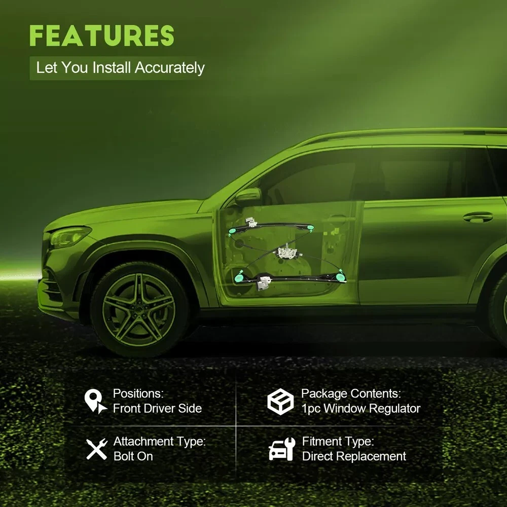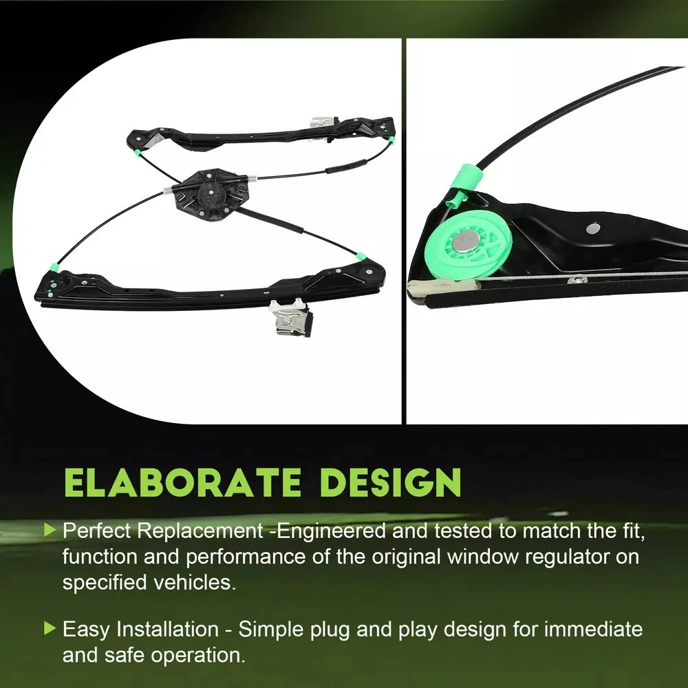 Description Our window regulator offer value without compromising quality. It with premium material and solid construction, ensures high strength and reliability. They direct fit -No missing holes, hardware or mounting brackets. It has been 100% tested for RPM, rotational direction, amperage and torque before shipment. Highlights include Built to meet or exceed original equipment performance Simple electrical plug assembly, no wire splicing necessary High-quality steel and plastic compounds for greater durability Your "Right Part" Checklist Use the compatibility chart to identify your vehicle. Visually compare the part you are replacing with our pictures. Match reference numbers from the Item specifics section above. Find the year,make, model, engine and trim in vehicle application to ensure. Part Number Replaces dealer part number: 752-286 8S4Z5423201A,752-286 Fitting for the following vehicles Ford Focus 2008-2011 L4 2.0L Sedan 4-Door Ford Focus 2008-2010 L5 2.5L Sedan 4-Door (Note fit for Sedan 4-Door only, not for Coupe 2-Door) Front Left Without Motor Package 1x Window regulator without Motor in a box