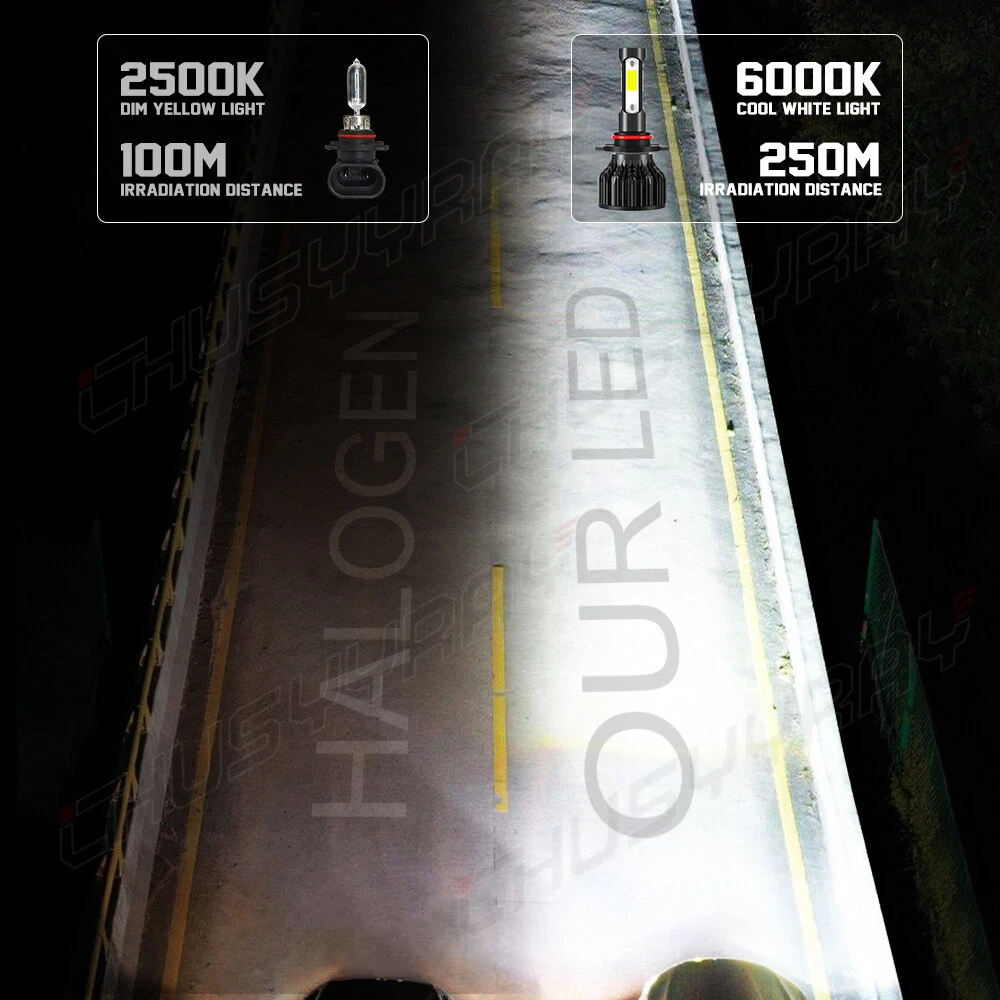 Key Features: 1. Designed to enhance your visibility and driving safety at night and bad weather. 2. Latest 4-side COB LED light source, super bright without blind zone. 3. Efficient cooling system ensures maximum headlight performance and appropriate working temperature. 4. Built-in smart IC chip provides intelligent temperature control and allows for instant start. 5. IP68 waterproof and high temperature resistant, withstand extreme weather conditions. 6. Easy installation without any modification or additional wiring, plug and play. Compatible Models and Years: - Universal for most vehicles on the market like SUV, bus, truck, sedan, pickup, sport utility etc. Spesification: Condition: 100% Brand New / Never Used Bulb Type: 9005+9006 LED Quantity(each bulb):4pcs* COB chips Voltage: DC fit 12V,24V vehicles IP Rate: IP67 Beam Angle: 360° Wattage: 120W per set Luminous Flux: 16000 LM per set Color Temperature: 6000K White Heat Dissipation Theory: Heat Pipe Technology + A380 Aluminum Heatsink + Fan Cooling Operating Life: >50,000hrs Operating Temperature: -40 - +80°C Application: High & Low Head Lights Number of Bulbs: 4 To Fit: High&Low Head Lights KIt Placement on Vehicle: Left,Right,Front Built-in constant current CPU,instant full brightness without start-up relay Easy plug and play design, no resistor or modification needed. The bulb body size of our bulb is smaller than other 4-sided LED bulbs on the market, no need to worry about interference with the dust cover. Package Include: ● 2x 9005 LED high beam bulbs ● 2x 9006 LED low beam bulbs (New and old packaging will be shipped randomly) Two-way heat dissipation channel: ☆All-in-one aluminum profile with the new honeycomb-structure design using dual ventilate cooling technology, surrounded by high-density cooling fins. ☆With strong built-in high speed mute fan (12000R/Min),high Air flow for faster cooling rate. Application Tips: ☆Bulb size: 9005 + 9006, as long as the halogen bulb size is the same with this, it will fit directly. NOTE: ☆eBay only lets us include some vehicle fitments per listing, if your vehicle does not show up on the compatibility table at the top of our listings, please do remember send messages to tell us your vehicle make, model, year and other information which is helpful to check bulb type. Information: a)Compatible List can not show up all Car model. Please check the Correct item size of your vechicle. it will work and fit.Thank you! b)If you are unsure the item fit or not , please do remember send message to tell us your car make, model, year and other information which is helpful to check the item fit or not.For example: For 2004 Ford F 150, high/low beam For 2015 RAM 1500 with projector-type, high beam For 2019 Ford F 150 ,XL Crew Cab Pickup 4-Door 2.7L Install Caution: 1. As a safety precaution, make sure that the car has had time to cool down properly before starting the installation. 2. Put the vehicle into park or make sure it is securely in gear. 3. Make sure to have the ignition turned off and the keys removed. 4. Be careful to avoid burns, especially when turning on or off the vehicles lighting. 5. Be careful to avoid crushing or cutting the bulbs. Also make sure to not touch the bulbs with your fingers, as this will cause blotting. 6. Fully examine the connection of the contact points, ports and the wires as faulty connections can cause lighting problems. 7. Make certain that the end of the bulb does not come in contact with the interior light shield of the headlight when adjusting the bulb. Note: 1. Please check the size of your bulbs on your vehicle before purchasing. 2. Please make sure the headlight housing has enough space for installation before purchasing. 3. Professional installation is highly recommended. If you have any questions, please feel free to contact us. 4.Compatible list can not show up all car model,it is only for reference. It may exist someting error for some car model because of the car upgradtion and car modification.So please make 100% sure before you purchase.Otherwise, we are not responsibe for this, thanks for your cooperations! On Dec 18, 2024 at 00:28:38 PST, seller added the following information: