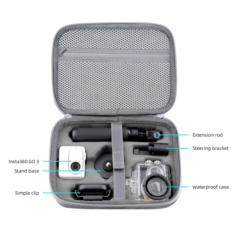 Features: It can effectively help to protect your device from scratches, dirts, dust, bumps and so on. Easy accessing to your camera with Zipper opening and closing. It has a inner net mesh for us to store other small articles, such as charging cable and so on. Specifically designed for GO 3 camera and other accessories. Storage Bag only, other accessories in the picture is not included. Specifications: Material:Cloth Color:Gray Size:Approx.23.5x18x8cm/9.25x7.08x3.15inches Package Includes: 1x Carrying Case note: 1.Please allow 1-2cm errors due to manual measurement, make sure that you do not mind before you order. 2.Due to the difference between different monitors, the picture may not reflect the actual color of the item.