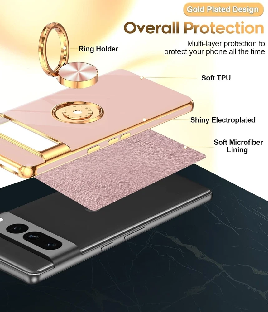 For Google Pixel 7 Pro Case With Soft TPU Cover & 360° Rotatable Ring Kickstand Compatible With: This case is specially designed for Google Pixel 7 Pro. Not Fit Pixel 7 Kickstand Design: The 360° rotatable built-in ring stand makes it easy to hold the phone. Works well as a stand to prop up your phone and gives you the convenience watch videos hands-free with desired comfort and stability. It is suitable for car magnetic mount Rose Gold Plated Design: The edge of the shell bumper and the edge of the camera are rose gold plated, making the phone full of luxury, stylish and timeless. Slim and lightweight, not bulky, and easy to hold. Not compatible with wireless charging TPU Material: The phone cover is made of TPU material, soft, smooth, durable, and easy to clean. The thin case ensures lightweight portability and drop resistance. Anti-fingerprint and anti-scratch to keep the phone as bright Precise Cutout: All buttons and interface design to avoid frequent disassembly. The case perfect cutouts for speakers, camera and charging hole allow you to easy access to all features and convenience for charging your phone without taking off the case What's in the box: 1x Case 1x Kickstand (Phone not included) USA SELLER!! BRAND NEW!! BEST QUALITY!! FAST DELIVERY VIA USPS!! GREAT FOR ANY OCCASIONAL GIFT TO YOUR FRIENDS, FAMILY, NEAR AND DEARS ONES!! Contact us Please give us the opportunity to resolve any problem before leaving any negative feedback or open any dispute. Please feel free to contact us on eBay's Internal Message System for any questions or concerns you may have. If you want to change shipping address or want a faster shipping etc., it's Better leave a note of under your order, so the system can hold on your order before we see your message, thanks. We will answer all your questions or concerns ASAP. Feedback We will make every effort to make your shopping the most pleasant and wonderful! Please contact us before leaving a negative feedback, giving us a chance to resolve your problem. Customer Service If you have any problems, we are very glad to help you. Please message us directly through eBay for faster response. Your inquiry is important to us and we'll respond within 24 Hr. SHIPS FROM U.S!!!!!!!!RECEIVE IT FAST AND FREE!!!!!!! Your order will be shipped within 1 business days upon full payment received. [ Due to the different monitor and light effect, the actual color of the item might be slightly different from the color showed on the pictures. Thank you! ]