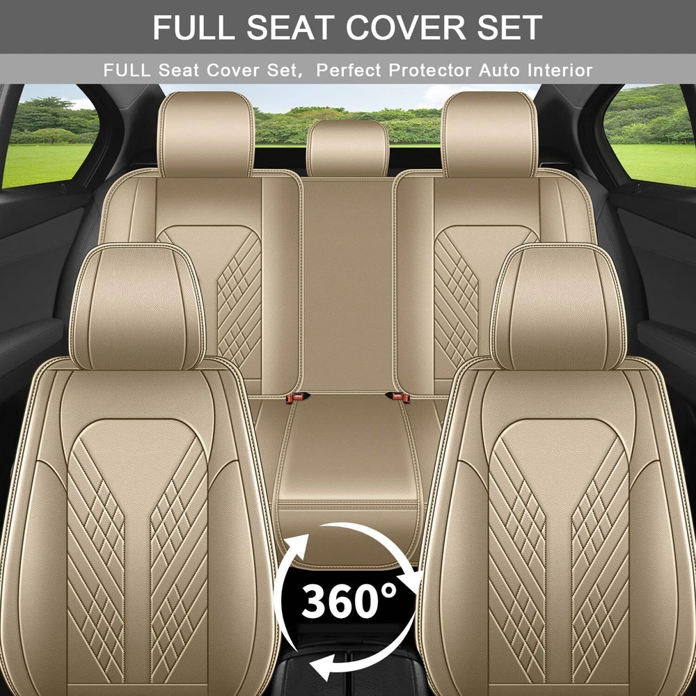 Notices: All the pictures have been professionally corrected, but due to the different ambient light and different display device settings, there may be some deviations in the pictures and items you see, please understand! Features: Universal fit for 5 seats,a full set of item include 2 Seat Cover, 1 Rear Seat Cover(3pcs separated), 5 headrest covers. Car seat heating, ventilation, seat belt buckles, airbags,cup holder,back seat 40/60 split work as normal after install. The front seat covers have back storage pockets for keys,phones and magazines. Stylish design and eco-friendly material, made from PU Leather: soft, smooth, durable and breathable. Much more durable and comfortable than most similar products out there. Improve the look of your car on the spot with these covers. Wear resistant and waterproof for car seat covers, no color bleeding. Very Easy to install: package comes with installation instruction in paper, please contact us via message to get video of instruction. Specification: Type: Car Seat Covers Color: Beige Material: PU Leather Range of application: 5 sits cars, all seasons Fitment: Fit for Honda Accord 2007-2017 Package included : 2* Front Seat Cover 1* Set of Rear Seat Cover 1* Bag of Accessories for installation On Nov 14, 2024 at 22:03:46 PST, seller added the following information: