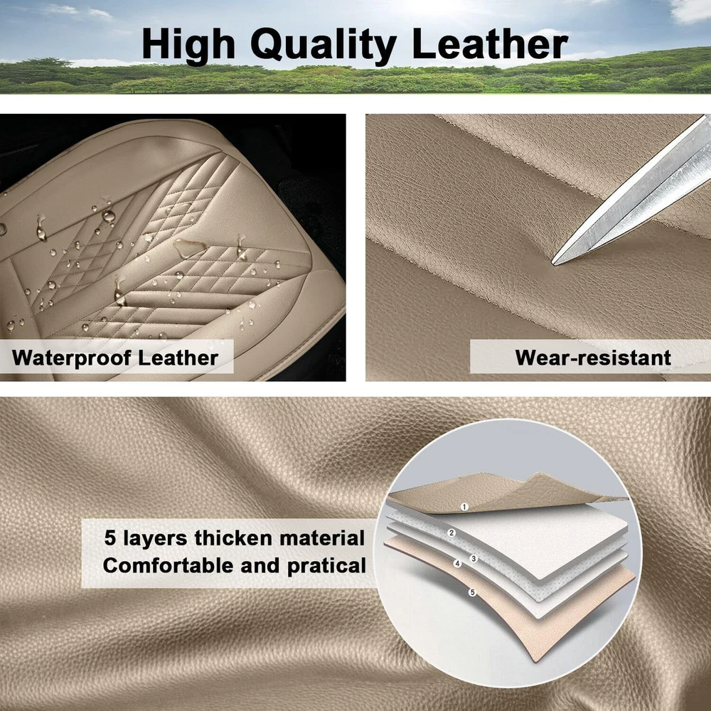 Notice ☆ All the pictures have been professionally corrected, but due to the different ambient light and different display device settings, there may be some deviations in the pictures and items you see, please understand! 1, Please refer to the list of applicable car models and years before placing an order. If you can't Find your car model or don't know wether itis suuitable or not,please contact with us before placing the order. 2, Due to installation requirements, please make sure that your headrest is removable before purchasing this seat covers. 3.Once you received the item, if you're not satisfy with the item or you have any questions please don't hesitate to contact us, thanks for your understanding and cooperations ! Features Easy to clean: Wipe clean easily with just a wet cloth, keeping your seat protects from stains, spills and damage. Easy to install: The package comes with an installation manual, please read it before you start the installation and you will be able to do it easily even if it is your first time to install the car seat covers. Safety: The front seat seats have airbag reserve ports on the side to ensure that the airbags can be popped out in case of emergency. The rear seat belt also completely exposed. Material: Premium faux leather is durable, breathable, wear resistant, non-slip, comfortable and has good waterproof. The interior of the seat cover is filled with sponge, the appropriate thickness allows you to sit for a long time without getting tired. Specification Product Type: Seat Cover Color: Beige Material: Faux Leather Fitment: Fit For Honda Accord 2007-2017 Include 2X Front Seat Covers 3X Rear Seat Covers 5X Headrest Covers 1 Bag of Accessories for Installation 1 Installation Manual