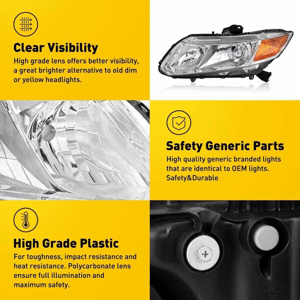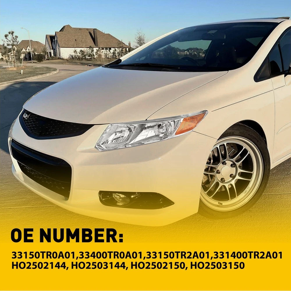 Fit for: 2012-2015 Honda Civic 4Dr Sedan 2012-2013 Honda Civic 2Dr Coupe Specifications: OE number: 33150TR0A01,33400TR0A01,33150TR2A01,331400TR2A01 HO2502144, HO2503144, HO2502150, HO2503150 Material: ABS+PC (ABS Plastic Housing/Polycarbonate lens) Appearance color: 1.Housing Color:Chrome 2.Lens Color:Clear 3.Reflector Color:Amber Note: Projector ×(Not Include) DRL × (Not include) Bulb × (Not include) Features: *Easy to install: Direct replacement, drilling and cutting are not required. For Honda Civic 2012-2015 Headlights Assembly Pair Chrome Housing Headlamp Fit for: 2012-2015 Honda Civic 4Dr Sedan 2012-2013 Honda Civic 2Dr Coupe Specifications: OE number: 33150TR0A01,33400TR0A01,33150TR2A01,331400TR2A01 HO2502144, HO2503144, HO2502150, HO2503150 Material: ABS+PC (ABS Plastic Housing/Polycarbonate lens) Appearance color: 1.Housing Color:Chrome 2.Lens Color:Clear 3.Reflector Color:Amber Note: Projector ×(Not Include) DRL × (Not include) Bulb × (Not include) Features: *Easy to install: Direct replacement, drilling and cutting are not required. *Superior quality: Made of ABS and PC materials with toughness and heat resistance functions to ensure its long service life and durability. *Angle adjustment: Equipped with a headlamp Angle adjustment knob, you can adjust the best Angle of view through the knob. *Suggestion: 1.Please confirm the OE number before purchasing!!! 2.Professional installation is required!!! Packaging include: Headlights*2(Left+Right) Item Specifics Brand AUXITO Lighting Technology Halogen Type Headlight Assembly Features Reflector Housing, SAE-Certified, Sealed Assembly Housing Color Chrome Placement on Vehicle Front Left,Right Light Color No Bulb Lens Color Clear Reflector Color Amber Manufacturer Part Number HDCV12.00 Color Temperature \ Voltage 12 V Mounting Style Screws Vintage Part Yes Performance Part Yes Manufacturer Warranty 5 Years Universal Fitment No Number of Bulbs 0 Finish Smooth Model For 2012-2015 Honda Civic 4Dr Sedan,2012-2013 2Dr Coupe OE/OEM Part Number 33150TR0A01,33400TR0A01,33150TR2A01,331400TR2A01 Quantity 2 Headlight assembly Packaging include Left & Right Side Headlights Assembly Bulbs Included Not Included Bulb Shape Code Please Use Stock Bulbs Include Projector Not Included Include DRL Not Included Fitment Type Direct Replacement Assembly Type Composite Type Headlight Assembly Mounting Hardware Included No Certifications DOT, SAE Dust and Moisture Protection Yes Waterproof Yes Ballast Included No Applicable Regions US Items Included Headlight Assembly Bulb Shape Code Just like the original Wattage \ Interchange Part Number HO2502144, HO2503144, HO2502150, HO2503150 Payment Variety of payment methods are accepted, such as credit, debit, gift cards, Apply pay, Google Pay, Paypal and Paypal Credit. Shipping 1. All items will be shipped in 24 hours after receiving your payment . 2. We ship this item to US only via USPS first class mail. It usually takes 3-5 working days to deliver. Returns 1. We offer 60 days return policy. 2. Please contact us if you have any questions with the products . 3. Refund will be sent after we got your returned package. 4. All returned items should be in the original packaging with tracking number. Contact Us We work from Monday - Saturday 9:00AM - 6:00PM, but we will reply once we get your message. There will be delay on response if you send message or E-Mail on Sunday. DESCRIPTION PAYMENT SHIPPING RETURN POLICY CONTACT US Shop Category Store Home LED Headlight ◈ 9005 HB3 ◈ 9006 HB4 ◈ H7 LED Fog Light ◈ H8 H9 H11 LED Plate Light LED Reverse Light LED Brake Light Rear Bumper Light LED Tail Light Tail Light assemblies Car Parts & Accessories ◈ LED Third Brake Light ◈ Other Parts & Accessories Other New List Item AUXITO H1 LED Headlight Bulb Conversion Kit High Low Beam 6500K Super White NEW USD 33.99 Smoked Side Marker Lamp Turn Light LED Signal W/ Bulbs for Honda Civic 16 17-21 USD 19.19 Rear View Back Up Backup Camera For Ford F-150 2015-2017 FL3Z19G490B FL3Z19G490D USD 38.99 H8 LED Headlights Low Beam Bulbs 80000LM Super Bright 6500K Halogen Replacement USD 35.99 Front Windshield Reveal Molding Surround Trim Sealing For 2006-2011 Honda Civic USD 13.18 Hot Item Rubber Seal Trim Prevent Water Leakage Windshield Sunroof Roof Top Window 10FT USD 10.99 FOR 94-04 MUSTANG PASSENGER or DRIVER SIDE MASTER POWER WINDOW CONTROL SWITCH USD 9.99 AUXITO Combo 4 9005 + H11 LED Headlight Kit Bulbs High Low Beam White 80000LM USD 35.99 Rubber Seal Trim Prevent Water Leakage Windshield Sunroof Roof Top Window 10FT USD 12.99 Auxito 9005 + H11 Combo LED Headlight 120W 80000LM High/Low Beam 6500K Bulbs Kit USD 46.99 Similar Item Excellent Delivery For Honda Civic 2012-2015 Headlights Assembly Pair Chrome Housing Headlamp Fit for: 2012-2015 Honda Civic 4Dr Sedan 2012-2013 Honda Civic 2Dr Coupe Specifications: OE number: 33150TR0A01,33400TR0A01,33150TR2A01,331400TR2A01 HO2502144, HO2503144, HO2502150, HO2503150 Material: ABS+PC (ABS Plastic Housing/Polycarbonate lens) Appearance color: 1.Housing Color:Chrome 2.Lens Color:Clear 3.Reflector Color:Amber Note: Projector ×(Not Include) DRL × (Not include) Bulb × (Not include) Features: *Easy to install: Direct replacement, drilling and cutting are not required. *Superior quality: Made of ABS and PC materials with toughness and heat resistance functions to ensure its long service life and durability. *Angle adjustment: Equipped with a headlamp Angle adjustment knob, you can adjust the best Angle of view through the knob. *Suggestion: 1.Please confirm the OE number before purchasing!!! 2.Professional installation is required!!! Packaging include: Headlights*2(Left+Right) Item Specifics Brand AUXITO Lighting Technology Halogen Type Headlight Assembly Features Reflector Housing, SAE-Certified, Sealed Assembly Housing Color Chrome Placement on Vehicle Front Left,Right Light Color No Bulb Lens Color Clear Reflector Color Amber Manufacturer Part Number HDCV12.00 Color Temperature 