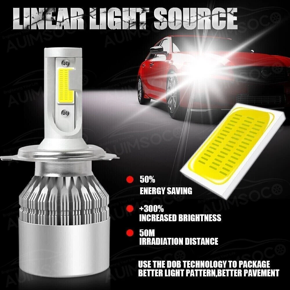 Store Categories Store Categories Other Details Description: Model: 9003 H4 LED headlight bulb Voltage: 12 volt Size: H4/9003 Color: 6000K (ultra white) Construction: Aluminum alloy/Polycarbonate/synthetic rubber High efficient cooling Fan: Yes Driver: Internal Canbus Driver: Yes (may work with CANBUS vehicle) LED chipset: COB Life span: <50000hrs LED light emission style: 2 sides operating temperature: -40~60C Package Included: 2x 9003 H4 LED Car Headlight Bulbs C6 Shipping Policy Payment Method Returns Policy Shipping Policy Payment Method Returns Policy Copyright©2017 DataCaciques Details Welcome to AUIMSOCO Authorized Store on eBay We sell all kinds of LED bulbs for high beams, low beams, fog lights, turn signals and so on. Description: Fog lights not included in this package! Model: 9003 H4 LED headlight bulbs Voltage: 12 volt Size: H4/9003 Color: 6000K (White Light) Construction: Aluminum alloy/Polycarbonate/synthetic rubber High efficient cooling Fan: Yes Driver: Internal Canbus Driver: Yes (may work with CANBUS vehicle) LED chipset: COB Life span: <50000hrs LED light emission style: 2 sides operating temperature: -40~60C Package Included: 2x 9003/H4 LED Car Headlight Bulbs C6 Shipping Policy Payment Method Returns Policy Shipping Policy NOTE: We will ship item locally for US buyers. Usually for US buyers it will take about 5-7 business days to reach. If you don't get it, please contact us firstly, we'll try our best to support you. For US customers, all items will be shipped out within 1-2 business day with cleared payment. Please included your phone number to the payment note for prompt and secure shipment. Tracking numbers for all orders are added to eBay once they have been dispatched; please login to eBay to find the tracking information for your order. Payment Method Instant PayPal payment is the preferred method of payment. We also accept payment via PayPal, DebitCard, Visa, MasterCard, Discover. We will only ship to the confirmed PayPal shipping address given with the payment. If you want to ship to other address, please change your PayPal shipping address before you make payment. To avoid initiating an unpaid item claim, please pay within 7 days Returns Policy 1. Customer satisfaction is our top goal. We believe our items are so outstanding. All products are quality checked. They are new and in good condition when shipped to our customers. We are convinced you will be happy with your Purchase. 2. Please contact us first if you have any problems/questions/concerns. We will be happy to resolve any issues you may have in a cordial and friendly manner. 3. We appreciate your Postive Feedback, and will do the same in return. DO NOT leave negative feedback without first communication with us. Please allow max 2 business days for us to response.