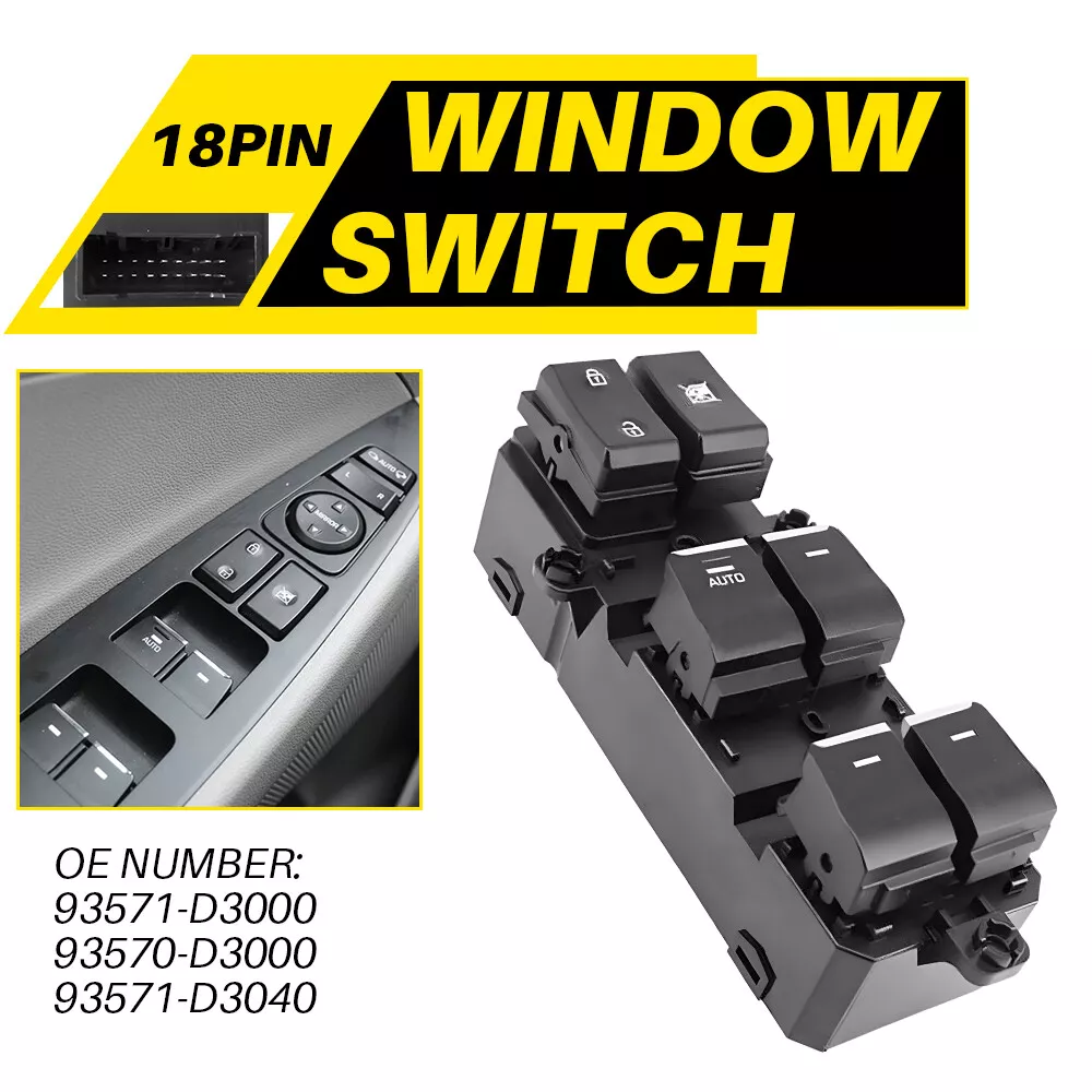 Fit for: Hyundai Tucson 2016-2018 Specifications OE Number: 93571-D3000 93570-D3000 93571-D3040 Number of Pins: 18 Pins Placement on Vehicle: Front left Features: *Stable Performance Better stability with longer service life. *Ideal Accessory This window switch fits, functions and matches the appearance of the old one for a perfect replacement. *Direct Replacement Direct replacement without other tools. *Quality Testing It has undergone simulation and endurance testing to ensure proper fit and performance. *Note For Hyundai Tucson 2016-2018 Master Left Driver Side Window Switch 93571-D3000 Fit for: Hyundai Tucson 2016-2018 Specifications OE Number: 93571-D3000 93570-D3000 93571-D3040 Number of Pins: 18 Pins Placement on Vehicle: Front left Features: *Stable Performance Better stability with longer service life. *Ideal Accessory This window switch fits, functions and matches the appearance of the old one for a perfect replacement. *Direct Replacement Direct replacement without other tools. *Quality Testing It has undergone simulation and endurance testing to ensure proper fit and performance. *Note Please ensure that the parts, connectors and OE number are the same as your old products before ordering to avoid the wrong purchase. Packaging Include: Window switch*1 Item Specifics Brand AUXITO Interchange Part Number 93571-D3000 93570-D3000 93571-D3040 Manufacturer Warranty 1 Year Placement on Vehicle Left Front Door To Control Window Type Push Pull Switch Manufacturer Part Number 93571-D3000 93570-D3000 93571-D3040 Features Durable OE/OEM Part Number 93571-D3000 Terminals 18 Pins Color Black Number of Pins 18 Pins Universal Fitment No Superseded Part Number 93571-D3000 93570-D3000 93571-D3040 FAQ ♥ If you have a decoding problem or any other problems, please contact us first, we will help you with it. We will reply you within 24 hours in working days. I'm a new seller, thanks a lot for your trust and convince! I will serve you with all my heart. ♥ Q1: Will this bulb fit my vehicle? A: We can match almost any vehicle to one of our bulb sizes. eBay only lets us include some vehicle fitments per listing, but if your vehicle does not show up on the compatibility table at the top of our listings, welcome you to contact us for free consulation before purchasing a product. Q2: My item has not arrived, what's taking so long? A: Sometimes items take longer than expected, especially if it’s going far or to rural area. Check with your post office to see if your item has been held up. Sometimes Royal Mail will not update a tracking number until it has arrived at its destination. If your item still don't arrive after a few days, let us know so we can double check for you and help solve it asap. Q3: My bulbs won't fit, help! A: Special bulb holder may be required. See if you can take the holder from the stock bulb. If not, let us know. The bulb size may be wrong, double check the item you received with the item you ordered. Do you have an aftermarket lighting housing? These may not be perfectly fitted for aftermarket bulbs and will require some manual modifications. Q4: Neither side lighting up? Both sides flicker, hyper flash, or work inconsistantly. A:Check the light fuses, and then check the ballast plugs to insure correct installation. If this doesn't work, there may be a voltage problem with the vehicle. You probably just need a relay or capacitor. Even though some bulbs are builtin resistors, they may still need a decoder. Pay & Ship (1). We gladly accepts payment via PayPal, We will ship your item(s) within 24 hours. (2). Before payment, please keep the consistency of Paypal address and ebay address. (3). Quantity orders are welcome! Returns (1). We offer 60 days free return policy. Please contact us within 60 days from the date you receive your order if you have any issues with the product or want return. Refund will be send after we got your resend package. (2). All returned items should be in the original packaging , return tracking information should be provided . Contact Us (1).Negative feedback will not help resolve any problems you have, please contact us via eBay messages before leaving negative feedback , our customer service will make best effort to help you with the issues. (2).We maintain high standards of excellenceand strive for 100% customer satisfaction! Feedback is very important to us. We request that you contact us immediately before you give us neutral or negative feedback, so that we can satisfactorily address your concerns. About us We're professional in car and motorcycle accessories, especially in LED bulbs. We have our own factory and R&D team. Our belief is to sell top quality items that fit your car and serve you with our heart. Anything please feel free to contact us! Our customer service is very responsibility. Come and follow us! DESCRIPTION NEW ARRIVED HOT SALE CONTACT US SAVE US Store Category Store Home Other Hot Item Master Window Switch Power Control Driver Side for 2008-2011 Dodge Grand Caravan USD 27.99 Car Door Lock Switch Button Cover Trim For 2010-2015 Mercedes Benz E Class W212 USD 12.99 Power Mirror Switch 901-319 For Ford F-150 F-250 F-350 F450 Super Dutyursion USD 14.24 12V Battery Disconnect Isolator Power Cut -Off Switch Master Car Remote Control USD 22.99 Master Power Window Door Switch for 1994-2004 Ford Mustang Convertible NEW USD 22.99 New List Item For 2015-2022 Hyundai Elantra Power Window Switch Front Driver Left Side Black USD 22.99 Master Power Window Switch Front Left Driver Side For 2010 2011-2014 KIA Sorento USD 20.99 For 2011-2015 Hyundai Elantra Beige Left Driver Master Door Window Power Switch USD 18.99 Power Mirror Switch Two Button for Silverado Sierra Tahoe YUSon Suburban YUSon USD 12.99 Front Left Side Power Window Switch for 2017-2020 Tesla Model 3 M3 1081037-01-F USD 21.99 Picture For Hyundai Tucson 2016-2018 Master Left Driver Side Window Switch 93571-D3000 Fit for: Hyundai Tucson 2016-2018 Specifications OE Number: 93571-D