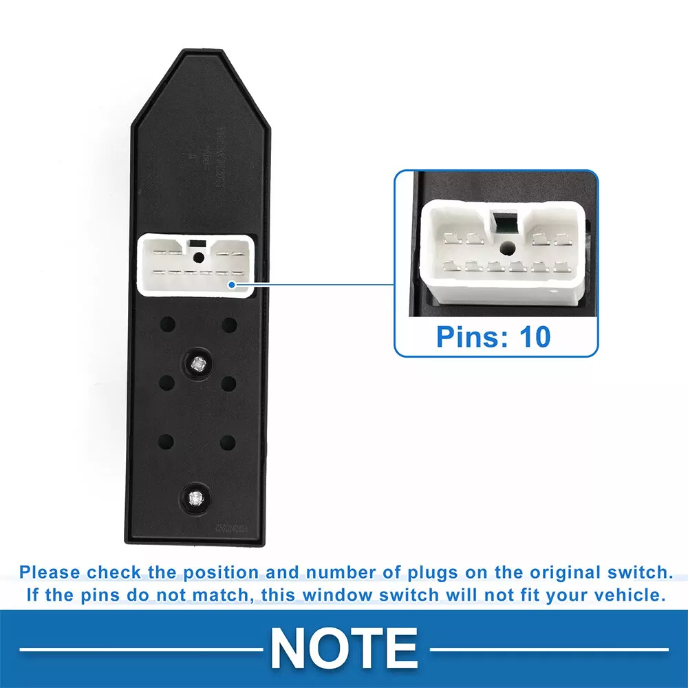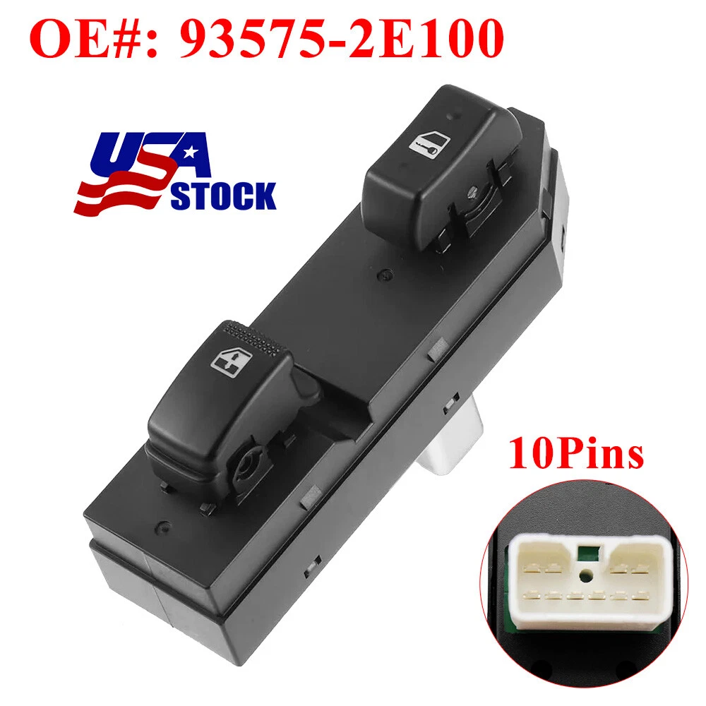 Front Electric Door Window Swtich Fit for Hyundai Tucson 2005 to 2013 93575-2E100 Features: Product Name: Power Window Switch To Control: Window Type: Push Switch Number of Pins: 10 Condition: 100% new Placement on Vehicle: Front Right Passenger Side Button Function: Door Lock/Unlock, Window Control Manufacturer Part Number: 93575-2E100 Color: Black Material: Plastic, Metal Note: This Is Aftermarket Replacement Item, not oem product. OE/OEM Part Number: 93575-2E100, 935752E100, 93575 2E100 Fitment: for Hyundai Tucson 2005-2013 Package Including: 1Pc Power Window Switch How to use: Use a skateboard to carefully pry the old switch out. Pull the plug from the old switch. Connect the new switch to the wiring harness. Finally, install it on the window switch bezel bracket. Tip: Please make sure that the OE number you need with our consistent before you order it. Make sure this is the correct application type of power window switch before placing an order. If the pins do not match, this window switch will not fit your vehicle. Please pay attention to the mating plug before installing the switch, and clean the excess dust.