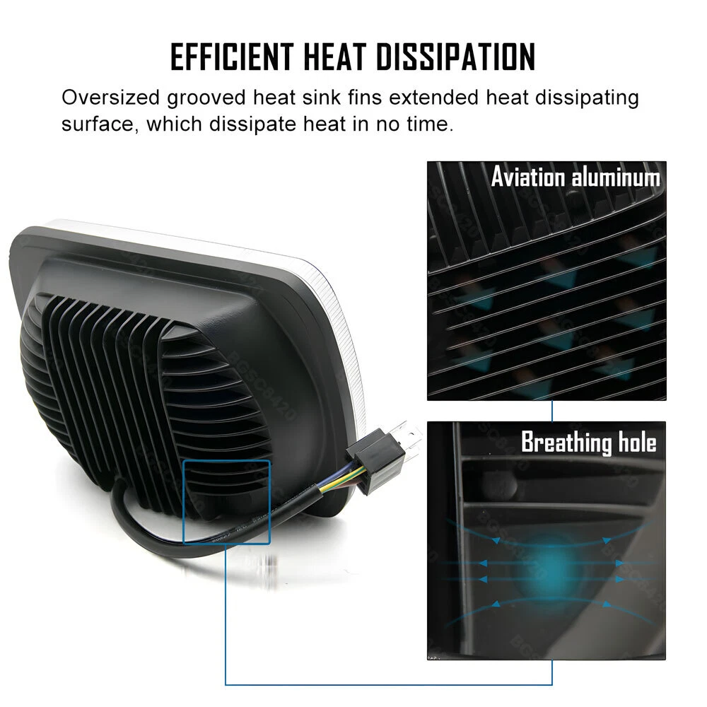 Package Included: Pair 7x6 inch led headlights with H4 plugs Features: Color temperature: 6000K Working voltage: DC 9V to 32V Moisture resistance rate: IP67 Beam pattern: High beam/Low beam Plug: Factory H4 plug with hi/lo beam function Average Lifespan more than 50,000 hours of usage LED wattage: 50W/PCS 100W/PAIR Size(Single Work Light): 7" (length) * 6" (width) Light output: high beam 4500 lumens per assembly / low beam 3000 lumens per assembly Made by high quality black aluminum housing with PMMA lens Professional installation is high recommended Vehicle Fitment Each piece comes with LED sealed beam light and toughen PMMA lens with H4 plug Fit for most vehicle with sealed beam headlights(H6014 H6052 H6054 H5054 H6054LL 69822 6052 6053) Applications: Fit for Isuzu Pickup Fit for most of vehicles which using 5x7/7x6 inch headlight, please see details from the compatibility list.