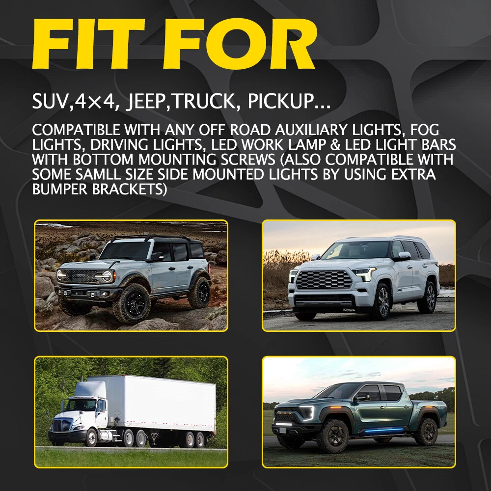 23inch BLACK License Plate Bracket Mount Bracket LED Work Light Holder OffRoad Fits for: Fits most Car, Truck, SUV, 4x4, etc. Specifications: Color:Black Material:Aluminum Size:23 inch Features: *Superior material Made of high quality aluminum alloy material with advanced production technology, impact resistance, anti-corrosion to ensure its long service life. *Installation 4 different locations/methods for installing off-road lights. It allows to add more auxiliary lights to front bumper without excess drilling/modification. For Jeep Wrangler Grand Cherokee Bull Bumper Bar Bracket License Lamp LED USA 23inch BLACK License Plate Bracket Mount Bracket LED Work Light Holder OffRoad Fits for: Fits most Car, Truck, SUV, 4x4, etc. Specifications: Color:Black Material:Aluminum Size:23 inch Features: *Superior material Made of high quality aluminum alloy material with advanced production technology, impact resistance, anti-corrosion to ensure its long service life. *Installation 4 different locations/methods for installing off-road lights. It allows to add more auxiliary lights to front bumper without excess drilling/modification. Note: The stand base may block the parking sensor in some vehicles. In some cases, you can drill additional holes in the bracket to securely install the bracket. *Wide application Compatible with any off road auxiliary lights, fog lights, driving lights, led work lamp & led light bars with bottom mounting screws (also compatible with some samll size side mounted lights by using extra bumper brackets) *All tested before shipment All products were tested for performance and to ensure the accurate parameter for your vehicle. Packaging include: 1 x 23inch BLACK license plate bracket Item Specifics Apply to1 Tractor??UTE??Van Camper??road roller??bulldozer??crane Apply to2 Sport Utility???WD 4X4??Mining??Marine??Car??excavator Apply to3 Pickup??Wagon??UTB??Cab??ATV??SUV??Jeep??Truck??Boat??Bus Apply to4 Car, Turck, 4x4,4wd, and so on Brand AUXITO Color Black Manufacturer Part Number Does Not Apply Manufacturer Warranty 5 Year Material Aluminum Size 23inch Type Bull Bar bracket, bumper mounting bracket, Lisence Other Part Number For LED Light Bar, Work Lights Off-Road Lights Finish As the picture shows Note Not include any led light pods or light bar Voltage DC 9~32V(fits 12V/24V vehicles) Color Temperature Pure White 6000K Life-span Over 50,000hours Placement on Vehicle Upper, Front, Rear, Left, Right OE/OEM Part Number 23'' Bull Bar Front Bumper License Plate Mount Bracket Payment We accept PayPal via eBay Secure Check-Out only. Immediate payment needs to be processed for items with Add to Cart option so that any promotional discounts can be applied to your order immediately. Shipping 1 .We do everything we can to ship your orders out as soon as possible. 2. Shipping and Handling: We process orders within two business day after the payment was clear. Returns Our 30-day Satisfaction Guarantee assures our customers that they will receive all orders promptly and exactly as described. In addition, it allows customers to return new and unused products in their original factory condition for any reason within 30 days from the date of purchase. 1. All returns must be pre-approved by AUXITO and have a return merchandise authorization(RMA) number. Unauthorized returns will not be accepted. 2. Buyers are responsible for appropriate packing, returning shipping cost, insurance and returning the item in "new" condition. Used items will not be accepted for return. 3. We will replace the returning item with an identical item, issue a full store credit or a full refund. Contact Us Our Working Time:(GMT+8)Monday to Friday,9:00-18:00. For inquires and customer support, please send your email via ebay email system. All emails will be responded to within 24 hours during business days. Feedbacks 1. We appreciate your business and strived to improve our customer service and our commitment to quality. 2. We will leave a positive feedback immediately after payment is received. We appreciate a positive feedback as much as you do. 3. If for some reason there is any issue with the purchase, please contact us prior to leaving feedback, and we will be glad to work with you to have it resolved. DESCRIPTION PAYMENT SHIPPING RETURN POLICY CONTACT US Hot Item 146PCS For Toyota RAV4 Fender Door Hood Bumper Trim Clip Retainer Fastener Kit USD 10.92 Waterproof Motorcycle Handlebar Dual USB Phone Charger Cigarette Lighter Socket USD 13.29 190 PCS Bumper Fender Moulding Side Garnish Grille Retainer Clip ABS Various USD 10.44 Fit For 2015-2019 Hyundai Center Light Gray Sonata Armrest Console Lid Cover USD 13.29 AUXITO 7440/7443 Turn LED Signal Light Bulbs Anti Hyper Flash Amber Super Bright USD 21.84 Hot Item 190 PCS Bumper Fender Moulding Side Garnish Grille Retainer Clip ABS Various USD 10.44 Fit For 2015-2019 Hyundai Center Light Gray Sonata Armrest Console Lid Cover USD 13.29 146PCS For Toyota RAV4 Fender Door Hood Bumper Trim Clip Retainer Fastener Kit USD 10.92 Waterproof Motorcycle Handlebar Dual USB Phone Charger Cigarette Lighter Socket USD 13.29 AUXITO 7440/7443 Turn LED Signal Light Bulbs Anti Hyper Flash Amber Super Bright USD 21.84 For Jeep Wrangler Grand Cherokee Bull Bumper Bar Bracket License Lamp LED USA 23inch BLACK License Plate Bracket Mount Bracket LED Work Light Holder OffRoad Fits for: Fits most Car, Truck, SUV, 4x4, etc. Specifications: Color:Black Material:Aluminum Size:23 inch Features: *Superior material Made of high quality aluminum alloy material with advanced production technology, impact resistance, anti-corrosion to ensure its long service life. *Installation 4 different locations/methods for installing off-road lights. It allows to add more auxiliary lights to front bumper without excess drilling/modification. Note: The stand base may block the parking sensor in some vehicles. In some cases, you can drill additional holes in the bracket to securely install the bracket. *Wide ap