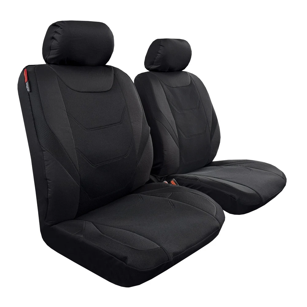 NOT WORKABLE FOR TRUCK SEATS WITH BUILT IN SAFETY BELT, 1/3 & 2/3 SEATS. This seat cover does not come with an armrest cover. If your Car Seat Have ARMREST ,When installing, you need to remove the armrest first, install the seat cover, and then put the armrest back on~ Airbag Friendly : Officially tested special stitching on front seat cover to allow airbag deployment. Car Seat Cover Warranty: 2 years Manufacturers' warranty Package Includes: Front seat covers x 2pcs Headrest covers x 2pcs Size: Universal Size( Front Rows ) ( Approx size ) Headrest cover x 2 30.00 x 29.00cm ( 11.81 x 11.42 inch ) Front Seat Cover Top 56.00 x 65.50cm ( 22.05 x 25.79 inch ) Front Seat Cover Bottom: 55.00 x 50.50cm ( 21.65 x 19.88 inch ) Material: Mesh Canvas with 5mm thick foam padding 5mm foam padded for extra comfort and full protection. Double stitching for toughest daily use and sporty looks. Airbag safe Technology used for strict safety purpose. Storage pockets on front back. Seat Cover Color: Black Installation video, please click the link or copy the link to your browser address: https://www.youtube.com/shorts/PCDWBYst1KI Click here to watch YouTube Shorts Installation video