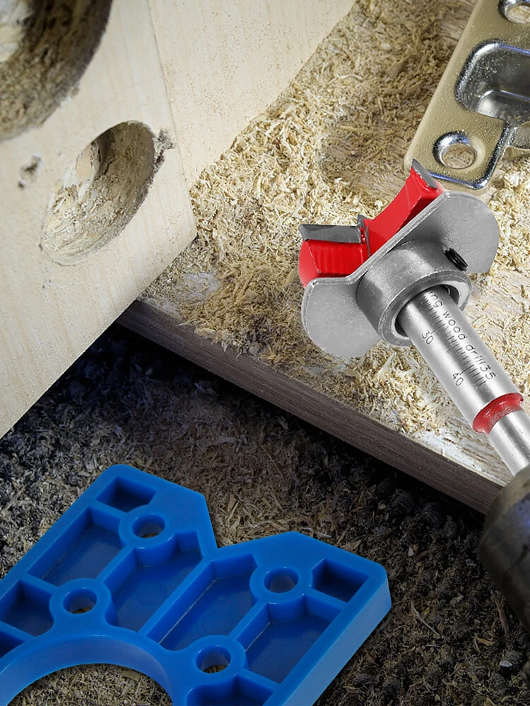 For Kitchen Cabinet Doors Concealed Hinge Hole Jig+Saw Drill Bit Tool Set 35mm⇔
