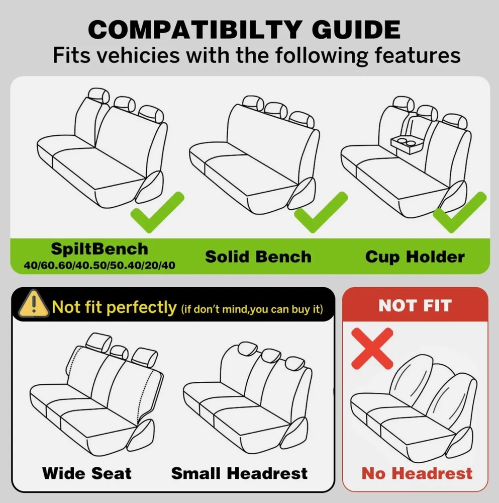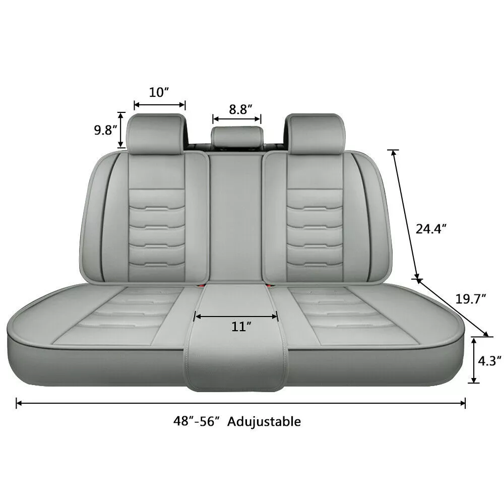 ๐ฏbest service ๐ฏ fast shipping ๐ฏ Resolve problems immediately ๐ ๐ ๐ ๐ if you have any questions ,just contact me though ebay emails,we will help you to solve. ๐ ๐ ๐ ๐ Package Included: 2 *Front Seat Covers + 2 *Front Headrest Covers. 2* Rear Bench Cover(size could be adjustable) 1* Rear Backrest Cover 1* Armrest Cover( Detachable) Some Round Plates for Install. if you need other color ,just clike buy it now Features: Premium PU leather, breathable and wear resistant. Soft touch and easy to wash with wet cloth. Airbag compatible and seat belt buckle reserved, no deploying block, enhance your driving safety. Full surround design, better protect your car seat against dirt, spills, stains, crumbs and pet hairs. Big content bag to enable storage convenience, keep your car interior clean and tidy. Detachable armrest cover, free to install and take off, practical to use. Adjustable and detachable rear bench, free to fit different seat sizes. Universal fit most 5-seat cars, SUVs, trucks and vans. Specification: Material: PU leather Fit:Universal fit 4 Season use Package Included: please select from the drop menu , thanks Notes: Please allow 1-3cm due to the manual measurement. There might be slight color deviation due to different displays. Please check the size of your car seat before purchase.