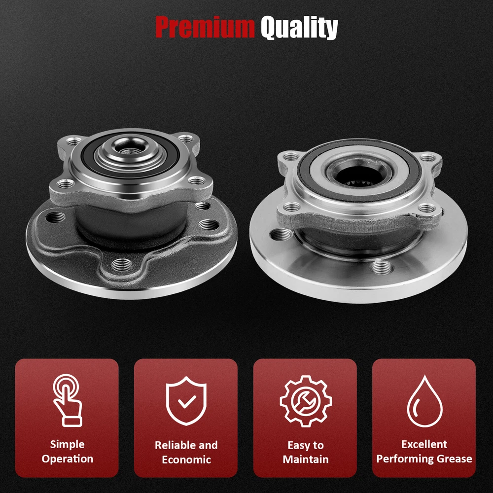 Compatibility should be checked and confirmed before placing order! Steps of confirming the compatibilities: Manage " My Garage ", and chose the right one when placing order; Or chose the " Year / Make / Model / Trim / Engine " of your vehicle on the compatible chart; Or Contact us if you have any question in confirming the compatibility, to make sure you will get the right and compatible item. Applications: Please check the copmpatible chart above. Package Content: 4pcs Wheel Hub Bearing, as picture showed Features: Location: Driver Side & Passenger Side, Front & Rear, 4pcs items in total. Manufactured to meet or exceed expectations for performance and fit. Built to strict quality control standards. Ready to use, Direct Replacement. Superior quality parts. 100% Factory tested. You will get what you see in the picture showed. About US: We are committed to making the best auto-parts products and providing you with better services. So if you have any quesiton or problem, please fell free to contact us about that. Payment: Paypal and other methods which are acceptalbe by eBay. Shipping: All item will be packed with well condition in box or envelope, we make sure the item is in good protection, also please check all the item when you get the package. Product will be shipped within 2 business days after full payment is received and verified. All domestic orders will be shipped via USPS, UPS or FedEx from our US warehouse and usually arrives to your door in about 2-7 business days. Returns & Refund: 30-day free return will be provided. -Please note that the situations below will not be incounted: -Ordered by mistake. -Don't like it. -Duplicated orders. -Damaged product during installation. Contact Us: Any quesiton or problem, do contact us please. We are always online to answer. WARNING: Cancer and Reproductive Harm - www.P65Warnings.ca.gov. End Save for Web Slices