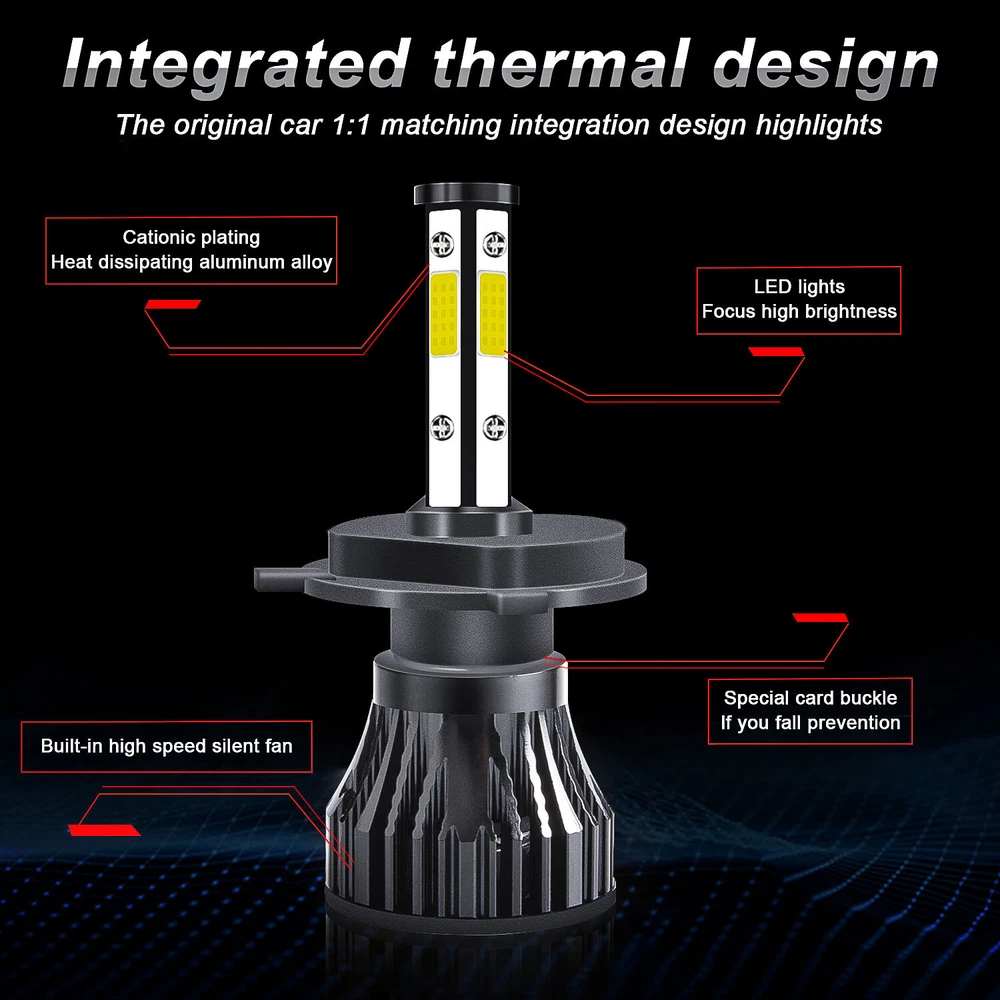 5-3/4"5.75 Round Stock Style H4 Conversion Headlights with Super Bright White LED Light Bulbs. Keep the Classic Look with Modern Light Brightness! Plug And Play! This listing is for a new set of 5 3/4" stock style glass lens - metal back headlight bulbs. This set includes (4) low/high beam headlights with high intensity LED light bulbs (no wiring or bucket modification needed). These have the original shaped prongs on the back so they will plug right into your original wiring harness plugs. These will fit any car or truck that has 4 round glass headlights. Will fit into stock buckets. Each bulb is 5 3/4 inches in diameter. These are glass and we will take extra care in packaging. Product Features: Dimension: 5.75 inch Housing Color:Black LED Type: White Material: Aluminum Housing, PMMA Lens Voltage: 10V-30V DC Color Temperature: 6000K Working Temperature: -40°C- 85°C Waterproof Protection: IP67 Interchange: H5009 / H5006 / H5506 / H5001 / 4001 Specification: 100% Brand New in the box with manufacturer packaging, never been installed before. LED LIGHT BULB Specifications and Features: Product Name: LED Headlight Bulbs Luminous flux: 10000LM Working voltage: DC9-32V IP rate: IP67 Wattage:55W Connector: H4 / 9003 (Low Beam and High Beam) Life Span: Above 50,000 Hours Color temperature: pure white 6000K Materia:Aviation aluminum profile Package Included: 4pcs 5.75" 5-3/4" headlight Housing 4pcs H4/9003 High & Low Beam LED Bulbs Note: 1. Please check the size of your bulbs on your vehicle before purchasing. 2. Please make sure the headlight housing has enough space for installation before purchasing.