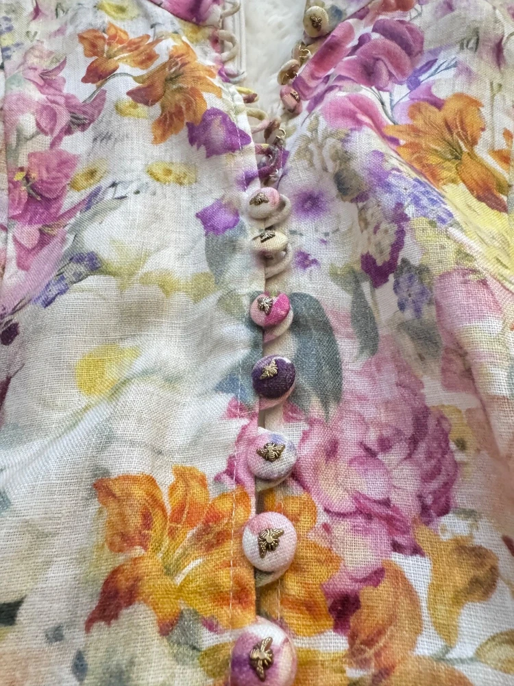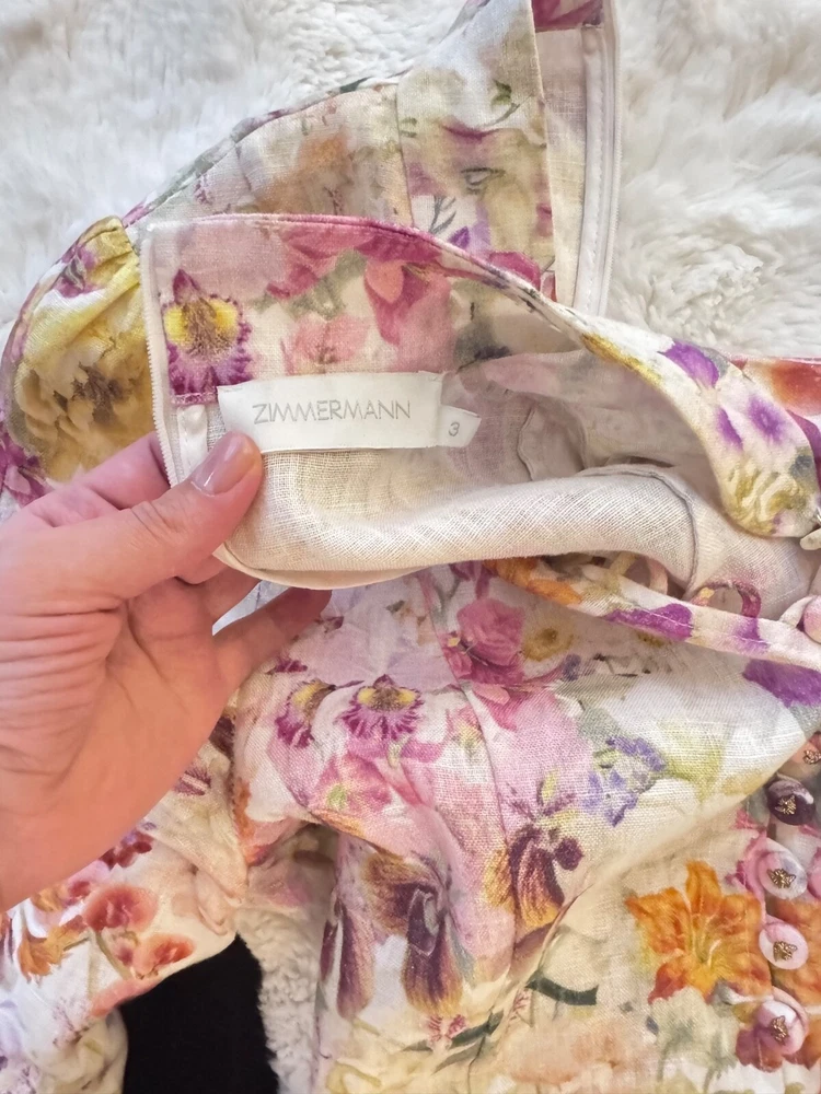 Elevate your wardrobe with the Zimmermann dress, a stunning piece that combines elegance with a touch of playful femininity. This maxi dress, featuring a charming floral pattern, is designed to flatter with its regular XL size, ensuring a comfortable fit for those who wear size 3-XL. Crafted for the discerning woman, the dress boasts long sleeves that make it perfect for a variety of occasions, from daytime events to evening soirees. The renowned quality of the Zimmermann brand is evident in every detail, making this dress a timeless addition to your collection.