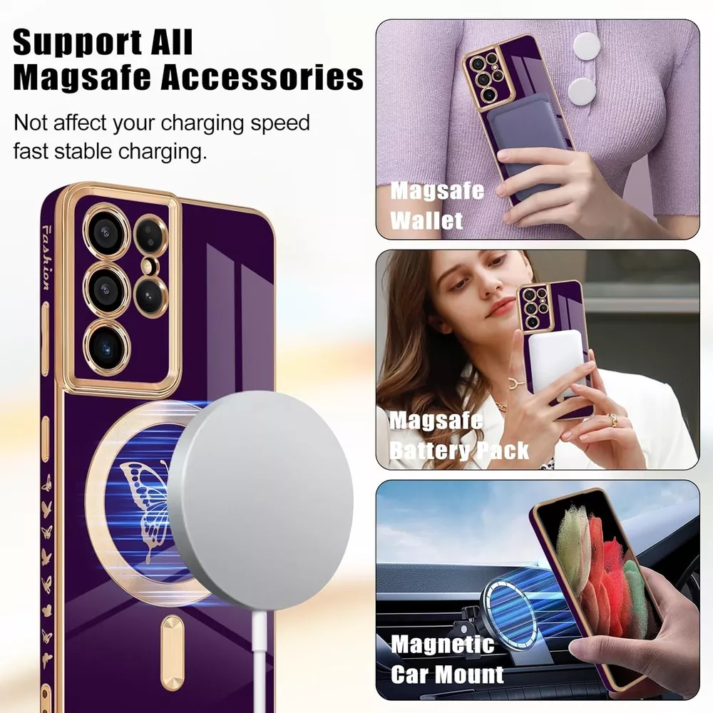 For Samsung Galaxy S21 Ultra 5G Case With Soft TPU Shockproof Protective Cover 【Perfect Fit】This magnetic case is specially designed for Samsung Galaxy S21 Ultra. Both support wireless and wired charging without removing the case. 【Cute Butterfly Design】Cute butterfly pattern, simple and fashionable, perfectly decorates your phone, making your phone so pretty. The luxury design makes this phone case a unique and elegant gift for women girls men. 【Stronger Magnetic Design】Built-in stronger magnets adsorption force without signal interference it can be firmly attached to all MagSafe accessories like the wireless charger, wallet, battery pack, and car mount. It will not easily fall off. 【Shock Absorption】Soft TPU material helps protect your phone screen and camera from rubbing and scratching on flat surfaces. Provide all-round protection for your phone from drops and bumps. 【Precise cutouts】 The precise cut-out allow you access to all the function ports easily, such as, speaker, camera, charging port, volume buttons, etc. The slim and lightweight design make it easy to install and remove. What's in the box: 1x Case (Phone not included) "We are committed to your satisfaction. If you are not completely satisfied with our product, we offer a 100% money-back guarantee." USA SELLER!! BRAND NEW!! BEST QUALITY!! FAST DELIVERY VIA USPS!! GREAT FOR ANY OCCASIONAL GIFT TO YOUR FRIENDS, FAMILY, NEAR AND DEARS ONES!! Contact us Please give us the opportunity to resolve any problem before leaving any negative feedback or open any dispute. Please feel free to contact us on eBay's Internal Message System for any questions or concerns you may have. If you want to change shipping address or want a faster shipping etc., it's Better leave a note of under your order, so the system can hold on your order before we see your message, thanks. We will answer all your questions or concerns ASAP. Feedback We will make every effort to make your shopping the most pleasant and wonderful! Please contact us before leaving a negative feedback, giving us a chance to resolve your problem. Customer Service If you have any problems, we are very glad to help you. Please message us directly through eBay for faster response. Your inquiry is important to us and we'll respond within 24 Hr. SHIPS FROM U.S!!!!!!!!RECEIVE IT FAST AND FREE!!!!!!! Your order will be shipped within 1 business days upon full payment received. [ Due to the different monitor and light effect, the actual color of the item might be slightly different from the color showed on the pictures. Thank you! ]
