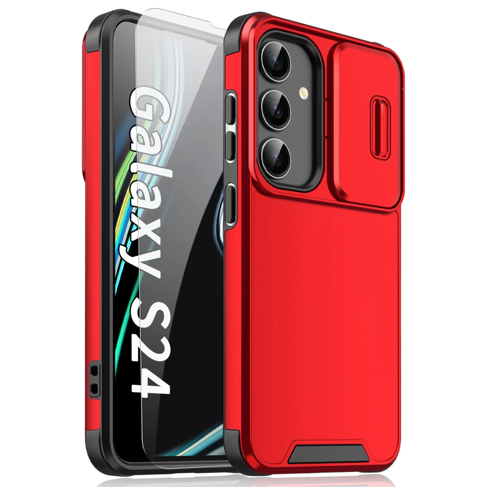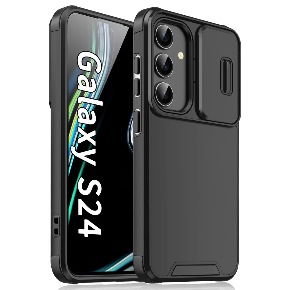 For Samsung Galaxy S24 Ultra S23 S22FE Case with Camera Cover + Screen Protector Key Features: Camera Lens Sliding Design: The sliding camera cover protects your phone camera from bumps and scratches, protecting your camera and privacy. Double-Layer Design: The case Composed of soft TPU inner shell and hard PC outer shell, it can resist severe impact and provide double protection. Raised Protection: We raised the screen bezel by 1mm and designed a 3.5mm raised protection for the camera to avoid daily wear and tear. High-Quality Materials: High-quality materials feel comfortable, not easy to slip from your hands, not easy to get dusty. Package: 1* Case Cover (Phone Is not included!) 1* Screen Protector