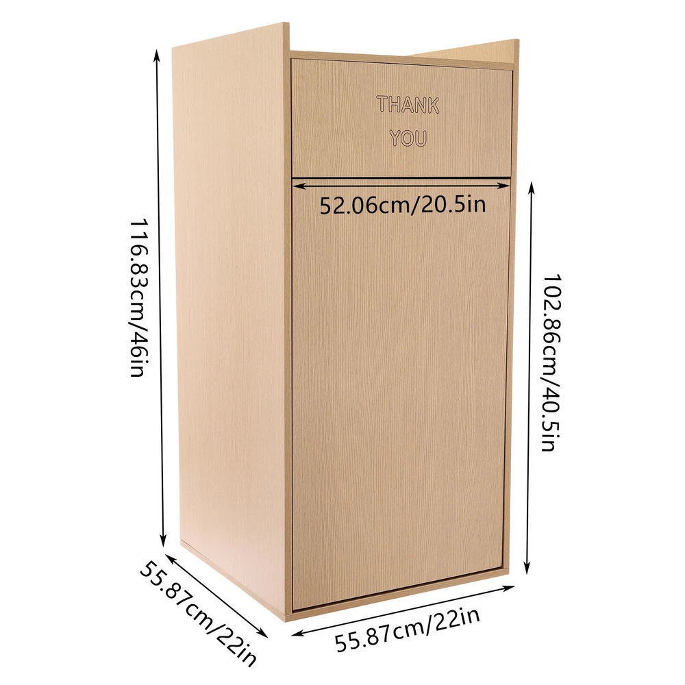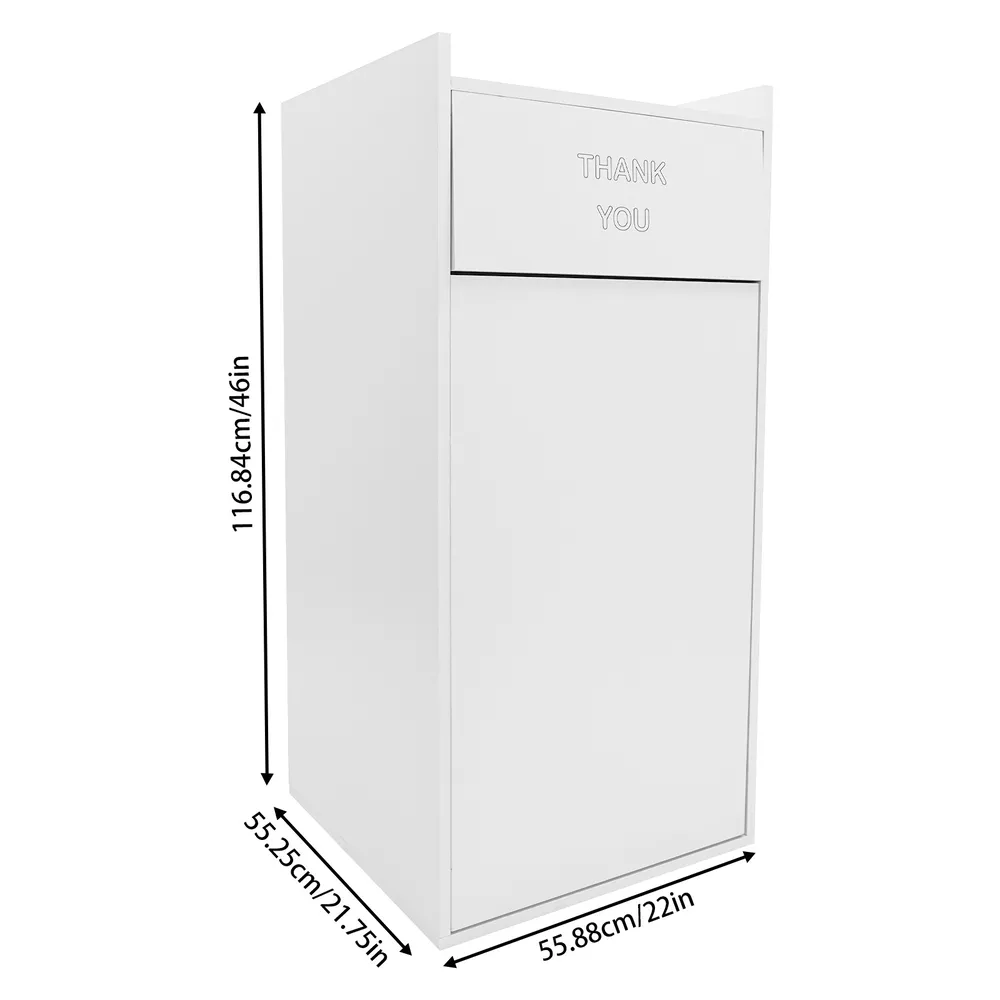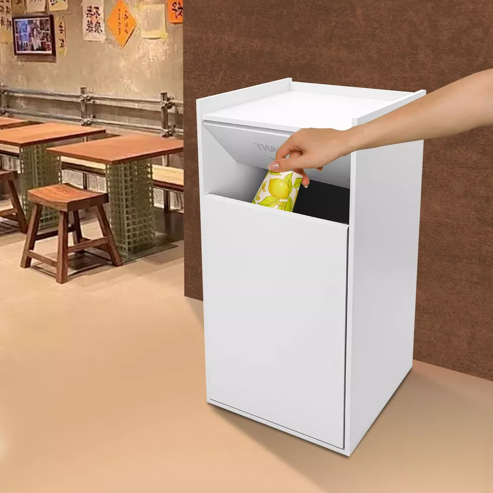 For Self-service Restaurant Trash Bin Cabinet W/ Tray Rack 40Gallon Freestanding Description Our trash can is a high-quality garbage collection container designed specifically for public places, crafted from carefully selected ecological boards, showcasing a natural texture and elegant appearance. It has a stable structure, large capacity, and can withstand high-frequency use. It is easy to clean, ensuring environmental hygiene and user convenience. Let it improve the cleanliness and aesthetics of the dining area now! Key Features Selected Material: The environmentally friendly ecological boards with a certain extent of moisture-proof performance are not easy to deform and wear, ensuring long-term use and conforming to the concept of modern green life. Spacious Capacity: Its built-in trash bag provides ample storage space (27.24 quarts), suitable for a variety of places such as offices, restaurants, cafeterias, and food courts, reducing the frequency of cleanup. Effective Load-bearing: Thanks to its thick boards and stable rectangular structure, it can effectively bear 110.23 lbs of weight, which can meet various commercial uses. Thoughtful Design: The large swing-open door design allows you to throw your trash more smoothly, and the top platform makes it easy to place items such as food trays(not included) on it. Contemporary Decorating: The simple silver appearance can be easily integrated into various business environments, adding a sense of elegance to the space. Pleasing Environment: With this trash can, the food court, office, or other public environments will be clean from dirty garbage and clutter, so you can enjoy a comfortable and civilized atmosphere. Easy to Clean: The smooth surface, removable trash bag, and simple structure make it easy to clean this product with a damp wipe. Its front door allows for convenient trash removal. Simple Installation: The simple structure, complete accessories, and reserved holes on the boards allow you to install it easily and start to use it in a short time. Customer Service: We aim to provide quality products and services. If you have any problems, please feel free to contact us. We will reply and solve the problem for you as soon as possible. Trash Bag: It comes with a foldable canvas trash bag inside, convenient for your daily use and cleaning. Heightened Baffle: The top edges are heightened(1.97 inches) to prevent items from accidentally falling off the top platform. Smooth Edges: The smooth edges without burrs enhance the beauty of the product and better care for your skin when cleaning it. Application It is ideal for restaurants, cafeterias, food courts, schools, hospitals, hotels, coffee shops, offices, libraries, break rooms, and so on. Specification Color: Silver/Brown/Black/Oak Style: Modern Shape: Rectangular Material: Ecological Board, Hardware Mount Type: Freestanding Assembly Required: Yes Overall Load-capacity: 50kg/110.23 lbs Trash Bag Capacity: 30L/27.24Qt Top Baffle Height: 5cm/1.97in Product Size: 55.88*55.88*116.84cm/22*22*46in Package Size: 120*62*12cm/47.24*24.41*4.72in Gross Weight: 18kg/39.68 lbs Package Included 1* Trash Can 1* Trash Bag Other Accessories for Assembly Notes Please check the product size before purchasing. Please do not place this product in a humid environment or expose it to strong sunlight for a long time. Please allow the slight color difference caused by the shooting light and 1-3cm error due to manual measurement and make sure you do not mind before ordering. Payment Delivery details Terms of sales About us Contact us Payment We accept ebay payment 。 Fees such as import duties, taxes are not included in the item price or shipping costs. These charges are the buyer's responsibility. Delivery details Shipping: 2-9 working days to: USA Terms of sales We maintain high standards of excellence and strive for hundred percent customer satisfaction. Feedback is very important to us. We hope that you contact us immediately before you give neutral or negative feedback, so that we can address your concerns. It is impossible to address issues if we do not know about them! About us Your satis faction is our ultimate goal. We work hard to earn your trust and future business. Our certified technicians have tested each item before shipping. The unit comes with 1 year limited warranty on all manufacturing defects. a) If you receive a defective item, you may return it or ask for a discount. Please contact us within 14 days after you receive the package. b) What you returned must be intact and in its original packaging as re? u. Customer is responsible for shipping costs of the returned item. c) We will cover the cost of shipping back t with the shipping rate indicated in the registration page. We will send you a new unit or refund the full payment you paid. Thank you. Contact us Business Hour Business Hour: Monday To Friday: 8:30 AM to 5:00 PM (Beijing China time) Due to time zones, our reply to your questions may not be immediately. But within above working time, we will reply your email within 24 hours. If it's non-workdays, please kindly be patient and wait till Monday. Please contact us with ebay message. Please feel free to contact us if you have any questions. Monday To Friday: 8:30 AM to 5:00 PM (Beijing China time) Due to time zones, our reply to your questions may not be immediately. But within above working time, we will reply your email within 24 hours. If it's non-workdays, please kindly be patient and wait till Monday. Please contact us with ebay message. Please feel free to contact us if you have any questions. Material Ecological Board, Hardware Brand Unbranded Room Bathroom, Bedroom, Home Office/Study, Living Room, Kitchen, Utility/Laundry Room MPN Does not apply Shape Rectangular Mount Type Freestanding Assembly Required Yes Overall Load-capacity 50kg/110.23 lbs Trash Bag Capacity 30L/27.24Qt Top Baffle Height 5cm/1.97in Product Size 55.88*55.88*116.84cm/22*22*46in Package Size 120*62*12cm/47.24*