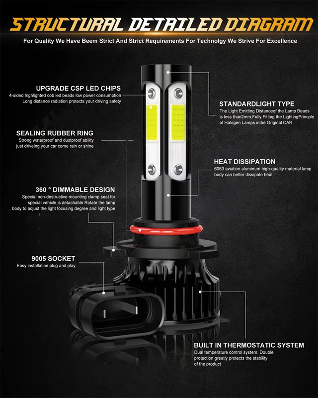 Note: ● Compatible List can not show up all Car model. Please confirm whether the item matches your car before purchase. ● You also can send us your car informations (Maker, Model, Year), so we can find the right bulb size for you. This listing compatible with 3 pairs (9005 + H11 + 9145) 6000K white super bright LED headlight high beam + low beam + fog light bulbs conversion kit. Headlight Bulbs Specifications: ● Bulb Socket: 9005/HB3 high beam + H11 low beam ● LED Quantity(each bulb): 4pcs* COB chips (4-sides), 360 degree clear beam no blind zone ● Technology: Bulit-in driver & cooling fan ● Connector(s): plug and play ● Operating Voltage: DC 9V ~ 32V , Fit for 12V / 24V vehicle. ● Wattage: 50W per bulb ● Luminous Flux: 20000 LM per set ● Color temperature: 6000K ● Light color: White ● Material: Aviation 6063 aluminum profile ● Beam Angle: 360 degree ● Operating Temperature: -40 - +85 degree Celsius ● Waterproof Rate: IP68 rated Waterproof and dust seal, works well even in extreme weather ● Lifespan: over 50000 hours life time, stable quality and long service life ● Application: headlight high beam + low beam ● Built-in constant current CPU,instant full brightness without start-up relay ● Easy plug and play design, no resistor or modification needed. ● The bulb body size of our bulb is smaller than other 4-sided LED bulbs on the market, no need to worry about interference with the dust cover. Two-way Heat Dissipation Channel: 1. All-in-one aluminum profile as heat conduction system, 360 degree heat radiating. 2. Built-In Turbo Cool Fan, High speed 12000 r/min, high air flow for faster cooling rate. Fog Light Bulbs Specifications: ● Bulb Size: 9145 9140 H10 ● Color: 6000K Xenon White ● LED Quantiy: 10pcs Per Bulb ● LED Type: SMDHigh Power Chip ● Beam Type: 360° Beam Angle ● Operating Voltage: DC 9V ~ 32V , Fit for 12V & 24V vehicle. ● High Power: 50W/bulb ● Luminous Flux: 3200LM per set ● Material: Aaluminum profile and virtually unbreakable PMMA Lens ● Long-lasting Lifespan 50000 Hours ● Plug and Play Easy Installation ● Fast on/off Response Time and Vibration Resistant Package Include: ● 2x 9005 LED high beam bulbs ● 2x H11 LED low beam bulbs ● 2x 9145 LED fog light bulbs On Nov 11, 2024 at 20:10:54 PST, seller added the following information: