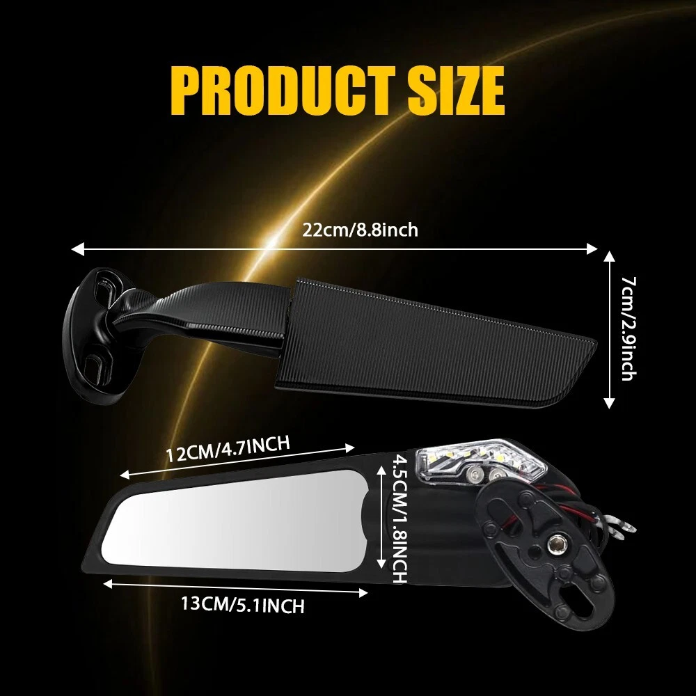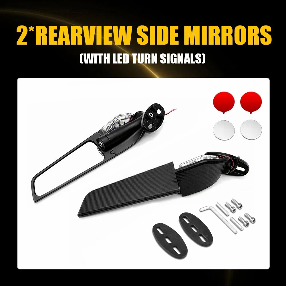 LED Wind Swivel Wing Rearview Side Mirror With Light for Yamaha R1 R3 Kawasaki Specifications: Material:CNC Aluminium Alloy & Glass & ABS plastic Color:Black Placement on vehicle: Front left,right Fits for: Univeral fit for Honda/ for Suzuki/ for Kawasaki/ for Yamaha/ for BMW/ for Aprilia/ for Ducati Note: With LED turn signal light,With 2pcs blind spot mirror Features: Simple installation Simple installation with direct replacement,other modifications are not required. Superior material Made of superior material with strong hardness and corrosion resistance to ensure its long service life and durability. For Suzuki GSXR 750 Side Mirror Rearview Wind Wing Mirror Blind Spot Mirror M LED Wind Swivel Wing Rearview Side Mirror With Light for Yamaha R1 R3 Kawasaki Specifications: Material:CNC Aluminium Alloy & Glass & ABS plastic Color:Black Placement on vehicle: Front left,right Fits for: Univeral fit for Honda/ for Suzuki/ for Kawasaki/ for Yamaha/ for BMW/ for Aprilia/ for Ducati Note: With LED turn signal light,With 2pcs blind spot mirror Features: Simple installation Simple installation with direct replacement,other modifications are not required. Superior material Made of superior material with strong hardness and corrosion resistance to ensure its long service life and durability. Reduce the rag The rearview side mirror can reduce the wind resistance and increase the sense of movement. Stable performance The product with stable performance provides a better shopping experience for our regular customer. Packaging include: 2X Rearview Side Mirrors (with LED turn signal light) ABOUT US For Suzuki GSXR 750 Side Mirror Rearview Wind Wing Mirror Blind Spot Mirror M LED Wind Swivel Wing Rearview Side Mirror With Light for Yamaha R1 R3 Kawasaki Specifications: Material:CNC Aluminium Alloy & Glass & ABS plastic Color:Black Placement on vehicle: Front left,right Fits for: Univeral fit for Honda/ for Suzuki/ for Kawasaki/ for Yamaha/ for BMW/ for Aprilia/ for Ducati Note: With LED turn signal light,With 2pcs blind spot mirror Features: Simple installation Simple installation with direct replacement,other modifications are not required. Superior material Made of superior material with strong hardness and corrosion resistance to ensure its long service life and durability. Reduce the rag The rearview side mirror can reduce the wind resistance and increase the sense of movement. Stable performance The product with stable performance provides a better shopping experience for our regular customer. Packaging include: 2X Rearview Side Mirrors (with LED turn signal light) FAQ Shipping Returns Contact Us Payment Why swith to LED? LEDs not only give your vehicle a clean, modern look but, with proper use, will outlast any halogen bulb and HID bulb! Low energy draw, high lumen output, and instant on/off LED technology out shines stock bulbs in every way. Which bulbs are used in my vehicle? Check Sylvania automotive lamp replacemnt guide , you can select the year, make, and model of your vehicle, then select the application you want to replace or upgrade from stock. What does CAN Bus mean? CAN Bus means Controller Area Network Bus. This system monitors your vehicle and reports operating conditions. CAN Bus systems are commonly found in European vehicles such as BMW, Audi, Mercedes, Volkswagen, Porsche, and in many American vehicles. While most late model American vehicles have CAN Bus systems, it is always good to check with your vehicle dealer to see which system your vehicle has before purchasing electrical products. When do you need Warning Canceller? Some vehicles with cmplex internal computers(such as Audi,BMW,Jaguar,Mercedes,etc.) might report on-dash errors or flickering on the headlights. The warning canceller fixes the dashboard warning and flickering effect. Bulb Out Dashboard Error: On some vehicles, the dashboard will report as if you have a headlight bulb missing or burnt. It does not affect the headlights functioning, but the light on-dash will be on. The warning canceller fixes the issue. Flickering Issue: This happens when your vehicle does not recognize the new headlights installed. When turning the headlights on, the vehicle's computer does not understand the signal back from the headlights hence thinking they are still off. This triggers the headlight flickering effect. The warning canceller solves this issue. LED Advantages: Very low and efficient energy consumption than halogen bulbs & HID Bulbs Compared with HID bulbs, LED bulbs Light up instantly, no warm up period Low voltage protection, high precision constant current driver chip Longer lifespan than HID and halogen bulbs Light can be controlled easily in color and intensity Easy to install a LED headlight conversion kit (1) We will ship your item(s) within 24 hours. (2) We ship this item to US only via USPS first class mail. It usually takes 3-6 working days to deliver. How Long Will It Take to Receive My Refund? If you have emailed us for a refund ,once we have approved it ,after 60 days your money will be refunded. The estimated time for the refund to appear in your account is based on the payment method you use. Paypal is the only supported in NIGHTEYE Store. Please notify us within 30 days after you've received your purchased item. All return requests must be submitted through your eBay account. NOTE: Buyers pay for the return shipping fee. Items to be returned must be in resalable condition, for example: You do not satisfy the item quality Item do not fit your vehicle perfect Item can not reach your expectation The item arrived be broken You do not receive the item Parcel Lost Receive the wrong item If you have problems with the above issue, please Contact Us immediately ! [Our office hours are MONDAY - Saturday 9:00PM - 6:00PM PST, but we will response you once we get your message .There will be some delay on respons if you send message or E-Mail on Sundy.] (1).Negative feedback will not help resolve any problems you have, plea