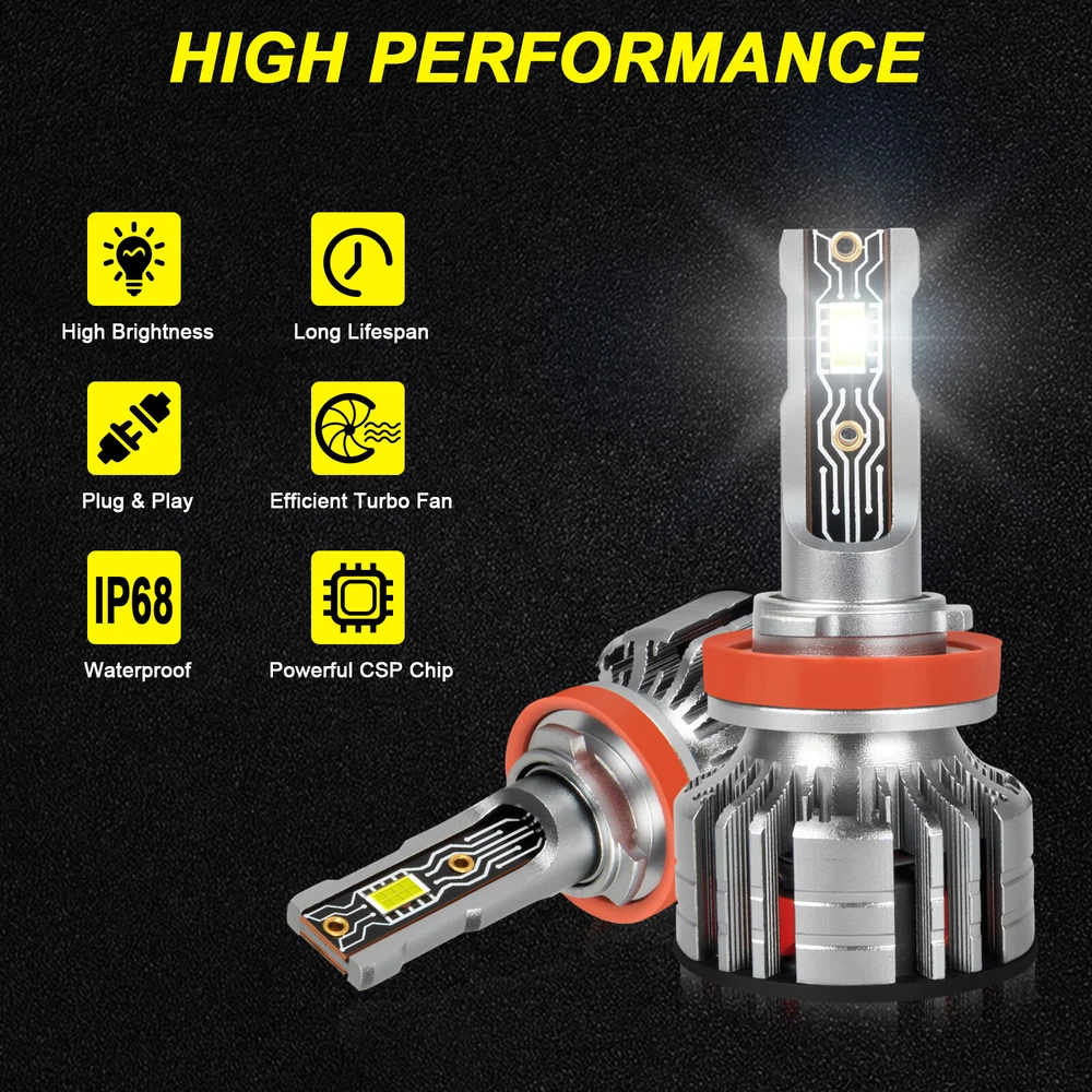 Note:Our LED bulbs only replace halogen or led headlamps.Can not replace the HID headlamps. Please double check before order. Bulbs Specifics Voltage: 9v-36v Power: 36W * 2 Lumen value: 6000LM Color temperature (color): 6000K Waterproof grade: IP68 Life: ≥50000hrs Fan: 12000 RPM Slient Turbo Fan Light source: Newest 16 PCS LED CHIP Material: Aviation 6063 aluminum profile Package Included 2pcs 9005 led headlight high beam bulbs 2pcs H11 led headlight low beam bulbs Why Choose This Bulb *IP68 WATERPOOF The lamp body can also be used normally when immersed in water No fear of any environmental challenge *WORKLING GREATUNDER ALL WEATHER Foggy、Rainy、Snowy、Haze Weather is no longer a reason to restrict travel *BULT-IN INTELLIGENT IC DRIVE Solve most computer system problems No electromagnetic interference *Smaller,More Mini Adapt to 98% of vehicles without worrying about installation problems Compatible with your vehicle better,plug and play, no modification required On Sep 25, 2024 at 20:48:13 PDT, seller added the following information: