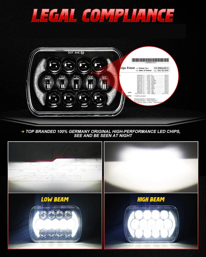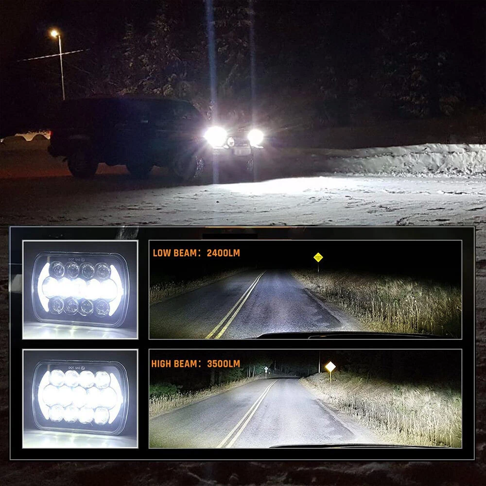 (Package of 1)Brightest 5X7" 7x6inch Rectangle LED Hi/Lo Headlight DRL for Toyota Pickup Truck Specification: - Function: Hi/Lo Beam + DRL - Size: 5x7 inch / 7x6 inch - LED Power:100W/pc - Luminous Flux: 6500LM@high beam,4500LM@low beam - Operating Voltage: 9-30V DC - Waterproof rate: IP 68 - High intensity LEDs - Color Temperature: 6000K-6500K - Material: Aluminium heat sink body - Lens material: PMMA Lens - Life Span: more then 80000 hours - Working temperature: -40~ 85C Package included: 1PC Black 5x7 7x6 inch 105w led headlight 1PC H4 9003 Harness Warranty 5 years