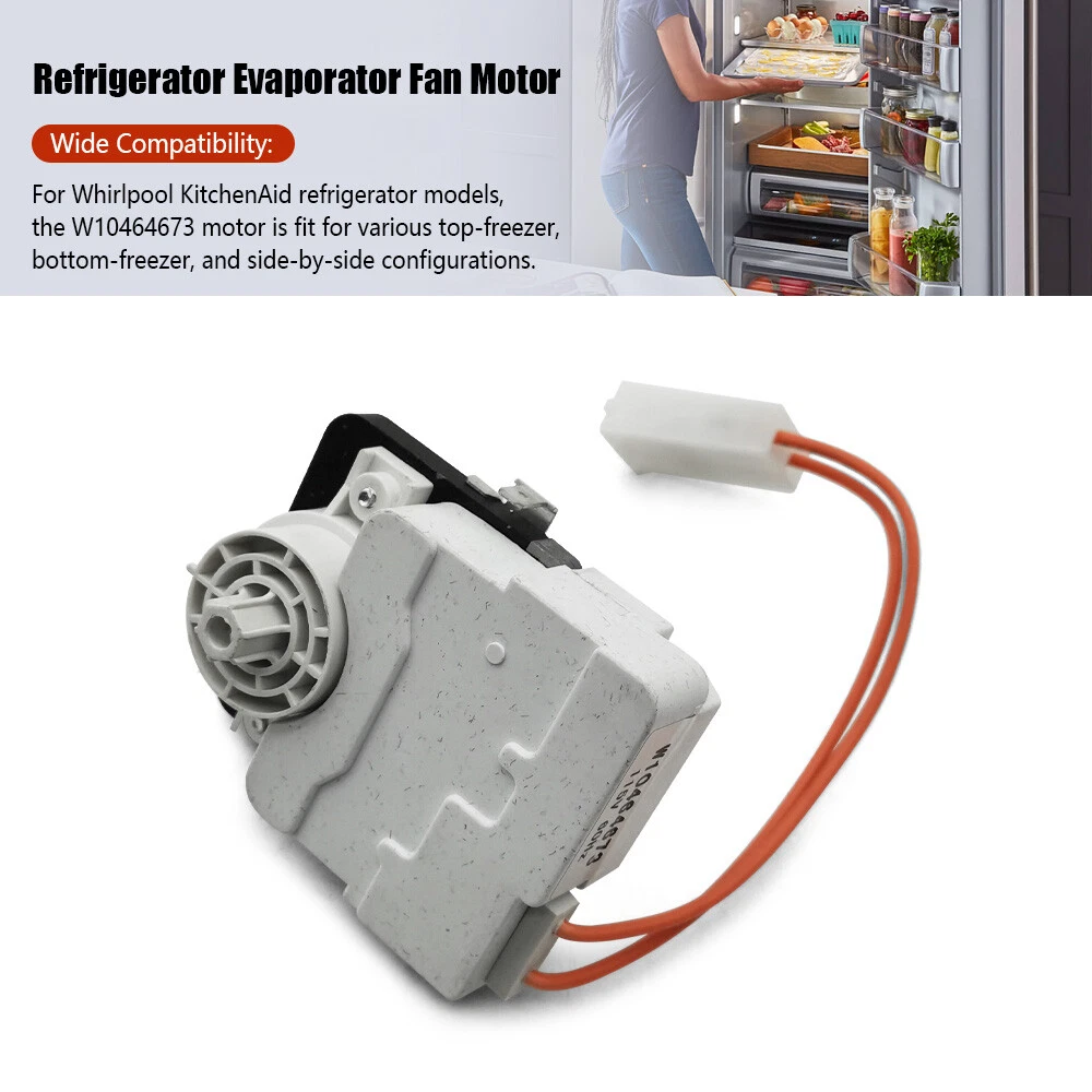 Product Description Upgrade W10464673 Refrigerator Evaporator Fan Motor Replacement Part Number: WPW10464673 PS7320664 PS11755167 3020513 P6021839 Compatible Models: The motor fits for whirlpoor KFFS20EYMS02, KRFF300EBL00, KRFF300EBS00, KRFF30OESS0, KFFS20EYBL02, KFFS20EYBL04, 10673002511, 10673003510, MFB2055YEM02, MFB205 5YEW01, MFF2055YEB02, MFF2055YEW00, MFW2055FRH00, MFB2055FRW00 Fixs The Following Symptoms: Not cool at all Noise from the fan Poor heat dissipation Fan damage or aging Abnormal refrigerator temperature Features: 1. High-Quality Material: The motor is made from durable and reliable materials, ensuring long-lasting performance. 2. Easy Installation: It is designed for easy installation, allowing users to replace the motor without any hassle. 3. Wide Compatibility: The motor is compatible with a variety of refrigerator models, making it a versatile choice for many users. 4. Optimal Cooling Performance: The evaporator fan motor plays a crucial role in maintaining optimal cooling performance in the refrigerator, ensuring that food stays fresh for longer periods. 5. Durability: The motor is built to withstand continuous use and is resistant to wear and tear, guaranteeing its longevity and reliability. You Will Get: 1* refrigerator evap motor About Us Payment Shipping Returns Contact Us Based in USA, offering high quality product Pick up orders welcome here and we also offer great discount for wholesales. We only accept PayPal payment . We process and dispatch your purchase within 2 business day after payment clearance. Please contact us if you have special requirements (combination of packaging etc.). We offer free USPS or FEDEX Package as default. If you choose express post, we charge a flat rate and we Express Post, which can be delivered in 1-3 business days, depending on your location. Please contact us first when return, exchange and refund is required. Any direct return of purchased items will not be processed. Change-of-mind return can only be accepted within 7 days after purchase. All other returns can be accepted in 30 days. We will closely examine the condition of the returned items and will not issue any refund/exchange before we make sure the items are in their original neat conditions. Before leaving us neutral or negative feedback, please contact us first. We will do everything we can to give you a satisfying solution. Please don't open case via eBay or PayPal. Please don't open any return request before contact us. We do our best to resolve any issue. Leaving negative feedback and low ratings doesn't get things solved. So please talk with us and we will not let you down. About Us Based in USA, offering high quality product Pick up orders welcome here and we also offer great discount for wholesales. Payment We only accept PayPal payment . Shipping We process and dispatch your purchase within 2 business day after payment clearance. Please contact us if you have special requirements (combination of packaging etc.). We offer free USPS or FEDEX Package as default. If you choose express post, we charge a flat rate and we Express Post, which can be delivered in 1-3 business days, depending on your location. Returns Please contact us first when return, exchange and refund is required. Any direct return of purchased items will not be processed. Change-of-mind return can only be accepted within 7 days after purchase. All other returns can be accepted in 30 days. We will closely examine the condition of the returned items and will not issue any refund/exchange before we make sure the items are in their original neat conditions. Contact Us Before leaving us neutral or negative feedback, please contact us first. We will do everything we can to give you a satisfying solution. Please don't open case via eBay or PayPal. Please don't open any return request before contact us. We do our best to resolve any issue. Leaving negative feedback and low ratings doesn't get things solved. So please talk with us and we will not let you down.