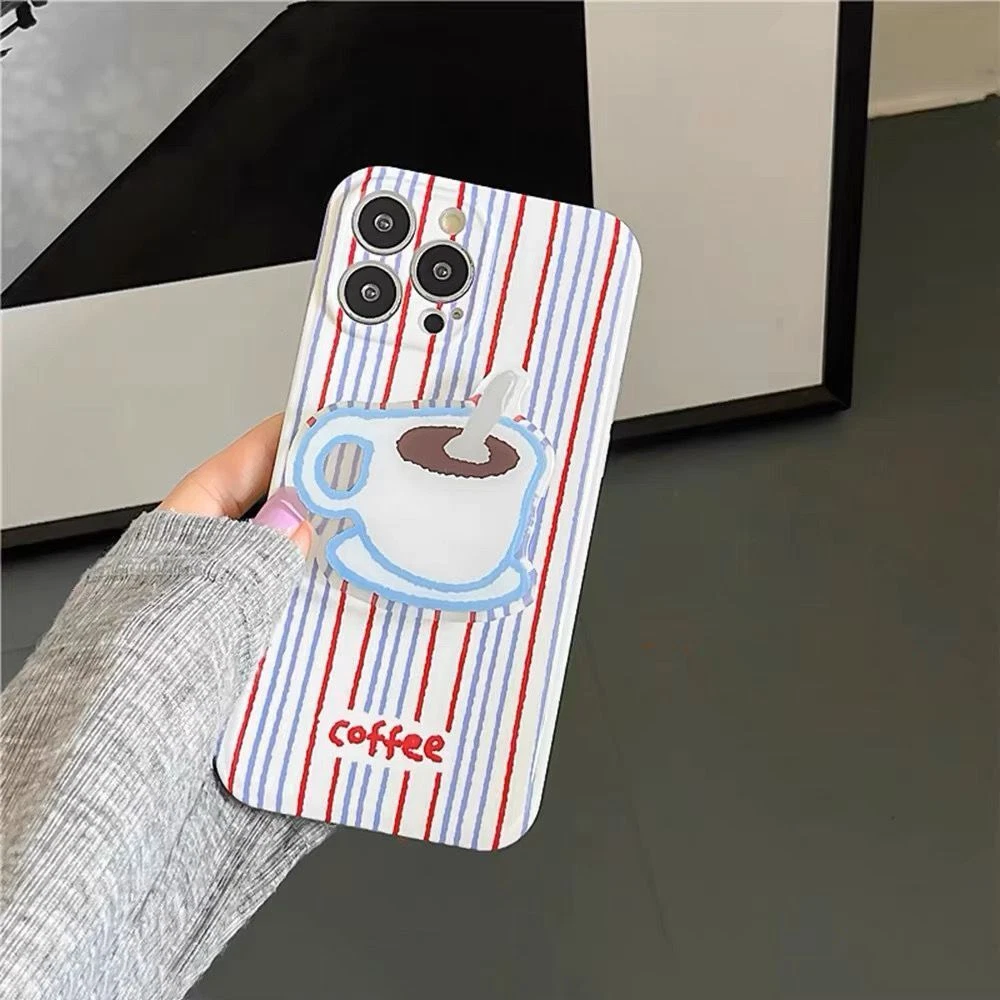 For iPhone 13 12 11 Pro Max Striped Coffee Soft Phone Case