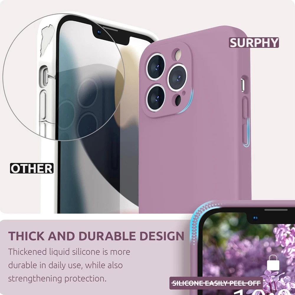 For iPhone 13Pro 2021 Case with Soft Microfiber & Camera Protective Cover Purple 13 Pro Case with Screen Protector: case compatible with iPhone 13 pro 6.1 inches (2021 Released), with tempered glass screen protector (high hardness, ultra clear, sensitive) Protects the Phone Camera: phone case covers the camera, provides protection for Each Lens on your phone, avoid damaging the camera when the phone is dropped Liquid Silicone Case for iPhone 13 Pro: Made of premium liquid silicone, smooth touch, anti-fingerprints, comfortable to grip; easy to clean, dust can be wiped with a damp cloth Silicone Case Thickened Design: Increase the thickness of the silicone material; provides enhanced protection and shock absorption for phone cases, absorbing the impact of drops Case with microfiber lining, soft and anti-skid microfiber lining on the interior protect your phone from abrasion; support wireless charging. What's In The Box : 1x Case Cover & 1x Screen Protector (Phone Not Included) USA SELLER!! BRAND NEW!! BEST QUALITY!! FAST DELIVERY VIA USPS!! GREAT FOR ANY OCCASIONAL GIFT TO YOUR FRIENDS, FAMILY, NEAR AND DEARS ONES!! Contact us Please give us the opportunity to resolve any problem before leaving any negative feedback or open any dispute. Please feel free to contact us on eBay's Internal Message System for any questions or concerns you may have. If you want to change shipping address or want a faster shipping etc., it's Better leave a note of under your order, so the system can hold on your order before we see your message, thanks. We will answer all your questions or concerns ASAP. Feedback We will make every effort to make your shopping the most pleasant and wonderful! Please contact us before leaving a negative feedback, giving us a chance to resolve your problem. Customer Service If you have any problems, we are very glad to help you. Please message us directly through eBay for faster response. Your inquiry is important to us and we'll respond within 24 Hr. SHIPS FROM U.S!!!!!!!!RECEIVE IT FAST AND FREE!!!!!!! Your order will be shipped within 1 business days upon full payment received. [ Due to the different monitor and light effect, the actual color of the item might be slightly different from the color showed on the pictures. Thank you! ]