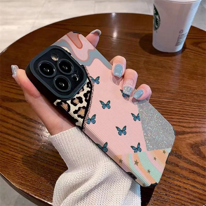 Light luxury splicing butterfly iPhone14promax Apple 13 mobile phone case 12 anti-drop 11 soft case xr label xs