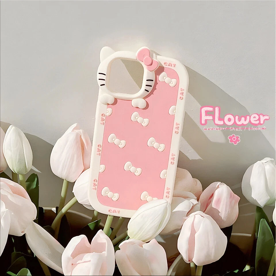 For iPhone 15 14 13 11 12 Pro Max Hello Kitty Cat face Clear Silicone Phone Case