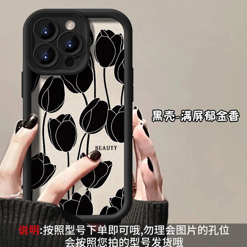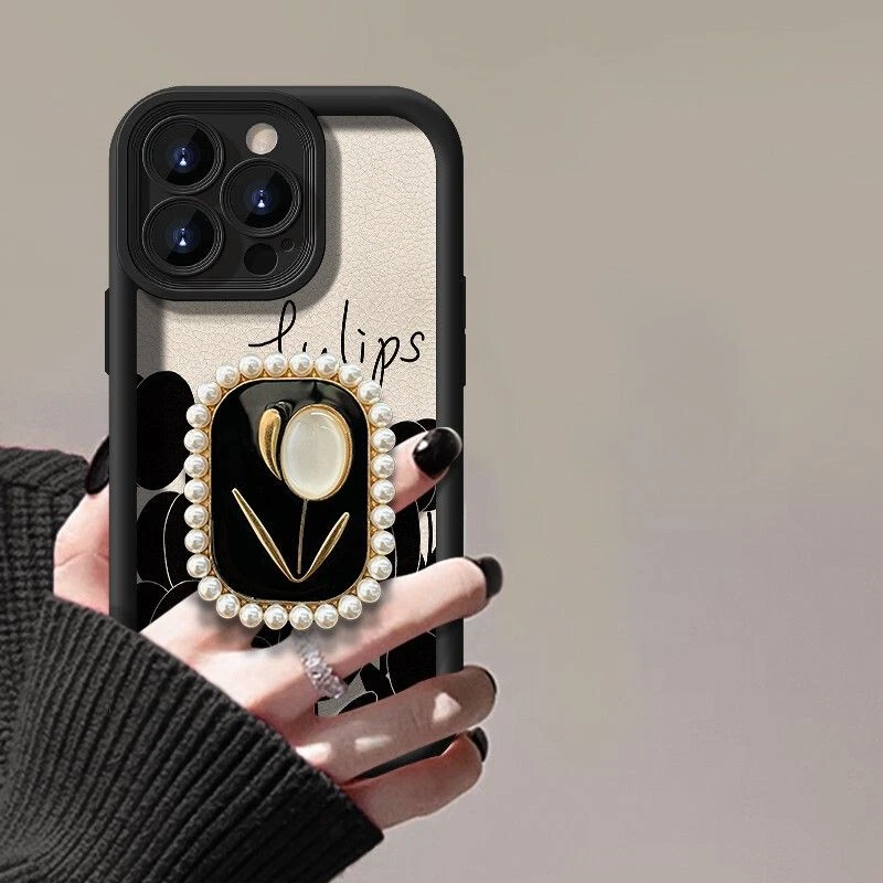 For iPhone 16 15 14 13 12 11 Plus Pro Max Tulip holder Silicone phone case