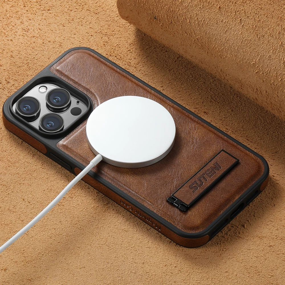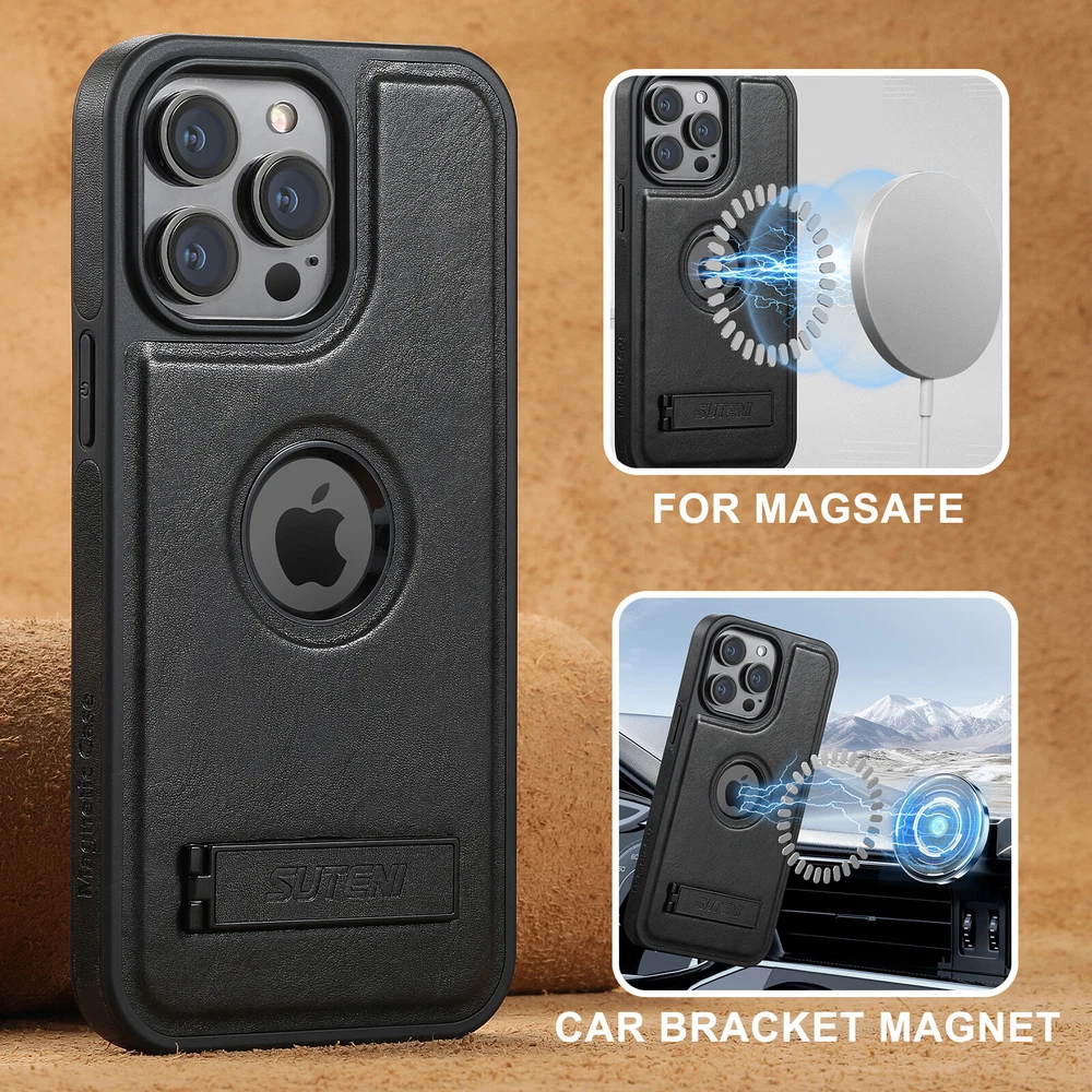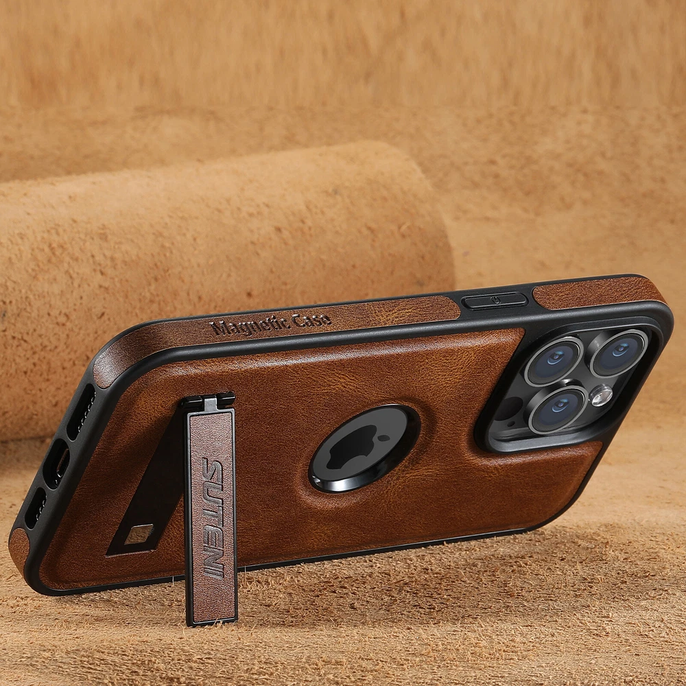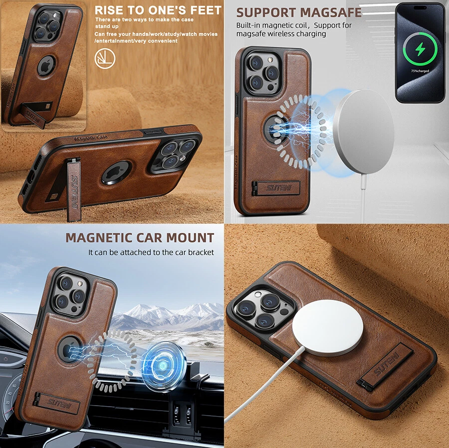 For iPhone 16 15 ProMax 14 13 12 Magnetic Shockproof Stand Case+Screen Protector Key Features: 1. Built-in Bracket: This case comes with a built-in bracket that provides a stable support for your phone, allowing you to watch videos, movies, and even participate in video conferences with ease. 2. Wireless Charging Compatible: Works with all standard wireless chargers. Magsafe charging will work but magnetization will be weak with this case. 3. Enhanced Protection: With precise button spacing and a secure fit, this case offers superior protection against accidental drops, ensuring your phone stays safe and undamaged. 4. Premiun Leather & Anti-Scratch Design: The surface of case letaher is made of environment premium pu leather makes your phone look retro, elegant and attractive. The TPU rubber bumper brings you a comfortable touch feel. Soft to touch,and resistant of scratch,fingerprints,oil and sweat. Package: 1* Case Cover (Phone Is not included!)