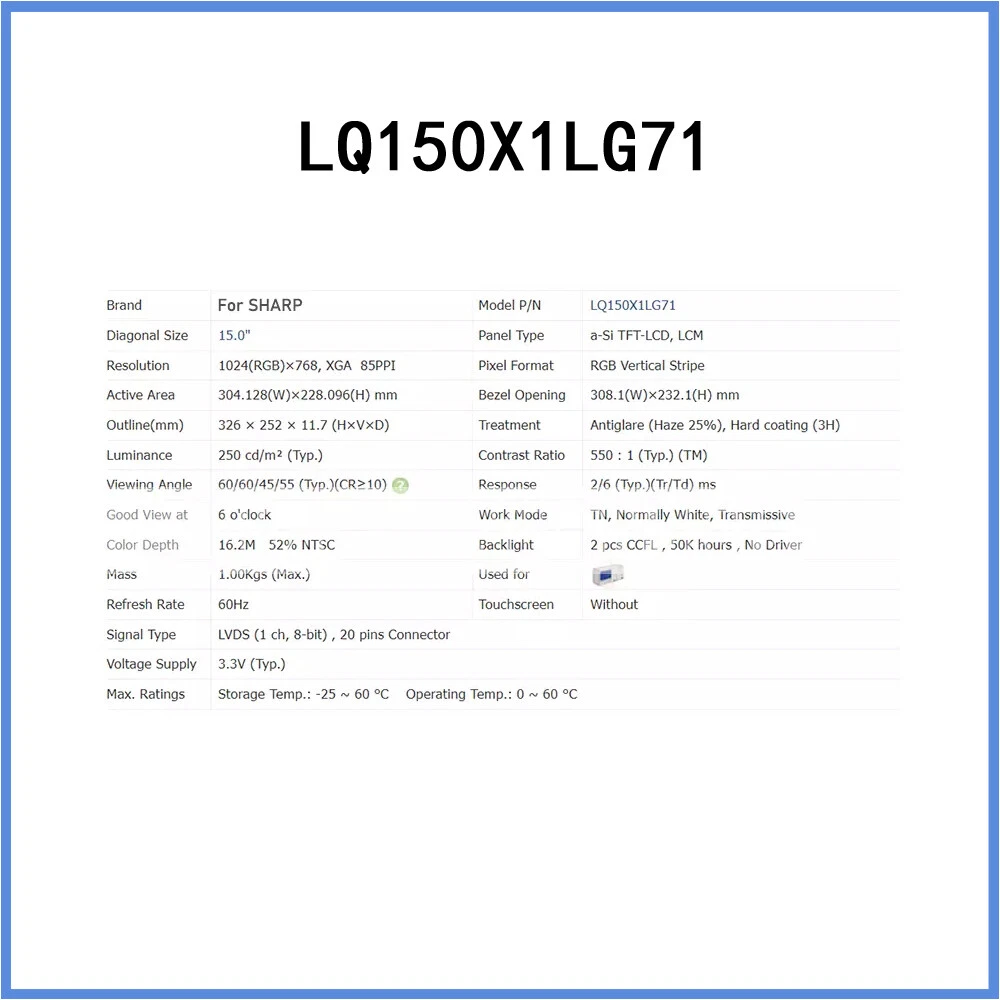 Store Categories Store Categories Computers/Tablets & Networking USB Flash Drives OTG USB Drive Creative Drive Cell Phones & Accessories Cases, Covers & Skins Cables & Adapters Chargers & Cradles Creative Gadgets Consumer Electronics Cameras & Photo Memory Card Readers & Adapters Home & Garden Lighting Parts Other For industrial control LCD panel 1024*768 LQ150X1LG71 15-Inch for Sharp Original Product Description Our company is mainly engaged in industrial control PLC products, touch screen, relay, power switch, USB accessories, is one of the few quality distributors/agents in China, if you have more needs, or need more quantity, or have other questions, please feel free to leave a message in eBay to contact us, so that we can contact you in a more timely manner, and we will give you more discounts, first-class service, so you can Buy with confidence ------>>>Please contact us! If over 40-55 days still not receive Parcel . Please Contact us (Refund or Resend the Product) ! Fast Shipping and Delivery 100% Brand New ! FEEDBACK. If you have any questions about the product after receiving it. Please contact us first. We keep our promise and will provide you the best solution within 24 hours.Please do not open the box on eBay. We pursue 100% customer satisfaction, so your positive feedback is very important to us. Thank you! About Us. Logistic Shipping Method: About Us. Shenzhen Tengjing Electronics Co., LTD is a B2B and B2C online store dedicated to companies engaged in industrial control electrical Electronic components industry. To facilitate buyers to be able to purchase globally We are not only an industrial control electrical and electronic retailer, but also a wholesale company. We do not have a full listing on eBay. If you are looking in large quantities, please contact us for a better offer. We hope to win your trust through reliable and competitive services. Our aim is customer satisfaction is our most purpose !!!! Logistic Shipping Method: Value over USD:300 We use DHL Express United Parcel, FedEx to send it to you extremely fast so that you can receive the items faster. The average delivery time is for reference only, the actual time varies from country to country, and is related to weather, natural disasters, epidemics and other uncontrollable factors. We can also choose the delivery channel according to the specific item you buy! If you need to specify the courier service, you can send me a message on eBay International customers (buyers) are responsible for all customs fees, import duties, VAT and other fees applicable in their respective countries. Please you must assist with customs clearance if necessary. Copyright © 2023 Dianxiaomi
