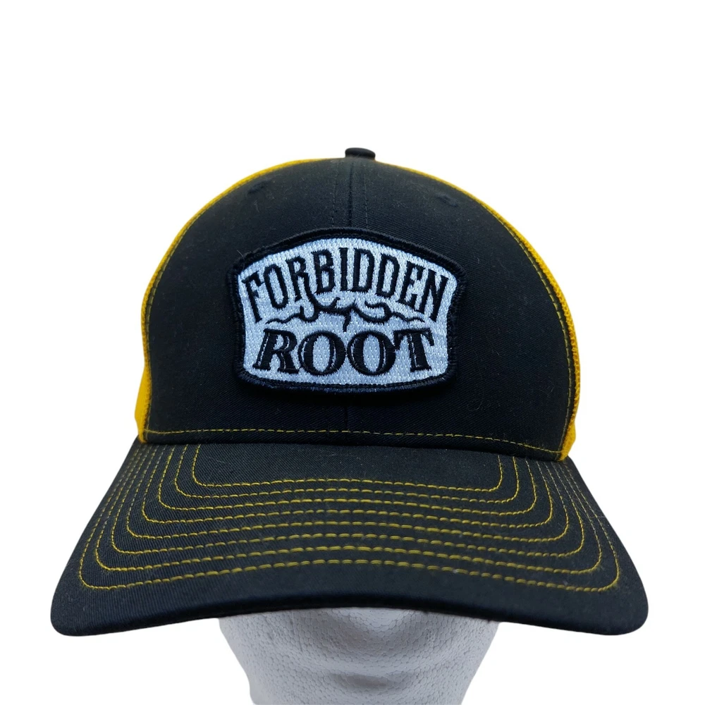 Forbidden Root Hat yellow black white mesh Snapback.