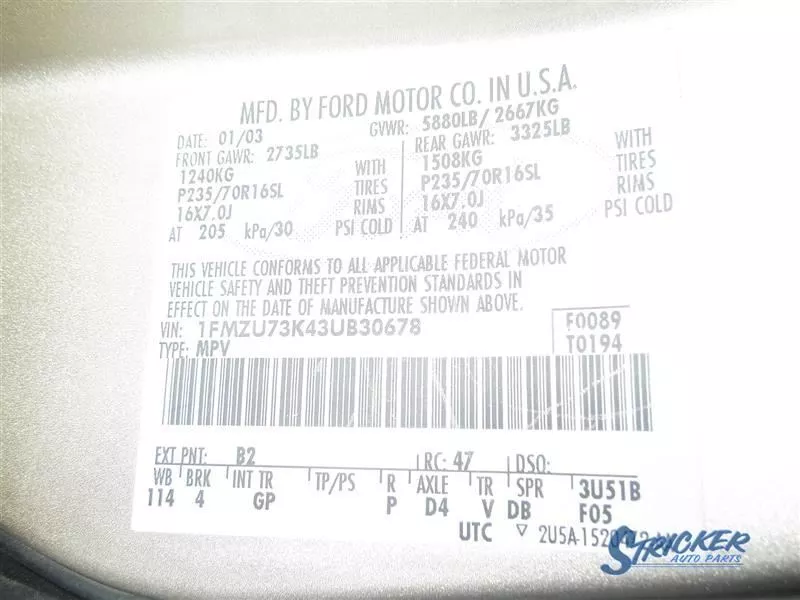 eBay WHI Template Ford Explorer Sport Trac 2002-2003 Wheel 16x7 Aluminum 5 Double Spokes R01035489 180 Day Replacement Warranty!! SELLER & PAYMENT INFORMATION Seller name stricker_bros See our other listings CUSTOMER SUPPORT If you have questions about the product or your order please contact us via eBay Messages for assistance. Thank you. Business Hours 8 am to 4:30 p.m. EST, MON to FRI SHIPPING & HANDLING Shipping Service Please refer to shipping section Shipping Cost Please refer to shipping section Order Processing Time 1 business day PART DETAILS Brand UNITED RECYCLERS GROUP Part Number 459741 Item Description Wheel Quantity Needed 1 ITEM SPECIFICS Description Why Buy Recycled? Save money and time in the repair shop. Original parts mean a perfect fit. Every part is cleaned, tested and inspected by experts. All parts are covered by warranty. Parts go back into cars rather than landfill. Type Wheel See Item Specifics section for additional specifications about this part. Additional Information We distribute Wheel's. This is a recycled product. URG is a group of certified recyclers of quality replacement parts. Unless specified as Universal this is a direct fit Wheel. A reminder that this listing is for a single Wheel which may be less than you need for your application. Check the fitment information for the qty your vehicle requires. 4 Dr exc. Sport Trac 16x7 aluminum 5 double spokes w/openings in spokes sparkle silver finish. Last Updated: 02/26/2025 06:00:05 AM Vehicle Fitment Summary To confirm that this part fits your vehicle, enter your vehicle's Year, Make, Model, Trim and Engine in the Compatibility Table . Also review the notes section in the compatibility chart for additional specifications about this part. This part generally fits Ford vehicles and includes models such as Explorer Sport Trac,Explorer with the trims of Adrenalin Crew C ab Pickup 4-Door,Eddie Bauer Sport Utility 4-Door,Limited Sport Utility 4-Door,NBX Sport Utility 4-Door,XL Crew Cab Pickup 4-Door, XLS Crew Cab Pickup 4-Door,XLS Sport Utility 4-Door,XLT Crew Cab Pickup 4-Door,XLT Sport Utility 4-Door. The engine types may incl ude 4.0L 245Cu. In. V6 FLEX SOHC Naturally Aspirated,4.0L 245Cu. In. V6 GAS SOHC Naturally Aspirated,4.6L 281Cu. In. V8 GAS SOHC N aturally Aspirated. This part fits vehicles made in the following years 2002,2003,2004,2005. To confirm that this part fits your vehicle, enter your vehicle's Year, Make, Model, Trim and Engine in the Compatibility Table . Also review the notes section in the compatibility chart for additional specifications about this part. Interchange Part Numbers This item may interchange to the following part numbers from other brands. This is provided for reference only and does not guarantee that the part your are buying is identical to the part numbers from the brands listed below. To confirm that this part fits your vehicle, enter your vehicle's Year, Make, Model, Trim and Engine in the Compatibility Table . Brand UNITED RECYCLERS GROUP Part Numbers 1L241007DF, 1L2Z1007DA ABOUT THE SELLER Stricker Auto Parts is a family owned and operated automotive recycling / auto salvage business with over 50 years of experience in our industry. Stricker Auto Parts is located in the Greater Cincinnati Area in Batavia, Ohio. We locally service Body Shops, Mechanical Shops, Dealerships, Insurance Companies, and Do-It Yourselfers in Cincinnati, Northern Kentucky, Dayton, Columbus, and Indianapolis. Stricker Auto Parts specializes in OEM and Recycled Used Auto Parts from late model cars, trucks, and SUV's. We operate out of a 68 acre state of the art facility and are a truly "GREEN" Economical Company. All Vehicles are brought in and drained of all fluids including gas, fuel, oil, coolant, brake fluids, power steering fluid, freon and more. These fluids are recycled to protect the environment. The vehicles are then dismantled and parts are removed. Most of which are stored inside our over 185,000 sq. ft. of warehouse space. This assures that our parts retain their high quality, and are quickly available for delivery, and worldwide shipping. Stricker Auto Parts takes pride in the quality of our parts as well as the accuracy in our inventory and grading systems. WARRANTY Warranty Duration 6 Month Warranty Type Replacement Warranty Portions of the part information on this page have been provided by WHI Solutions, Inc. All rights reserved.