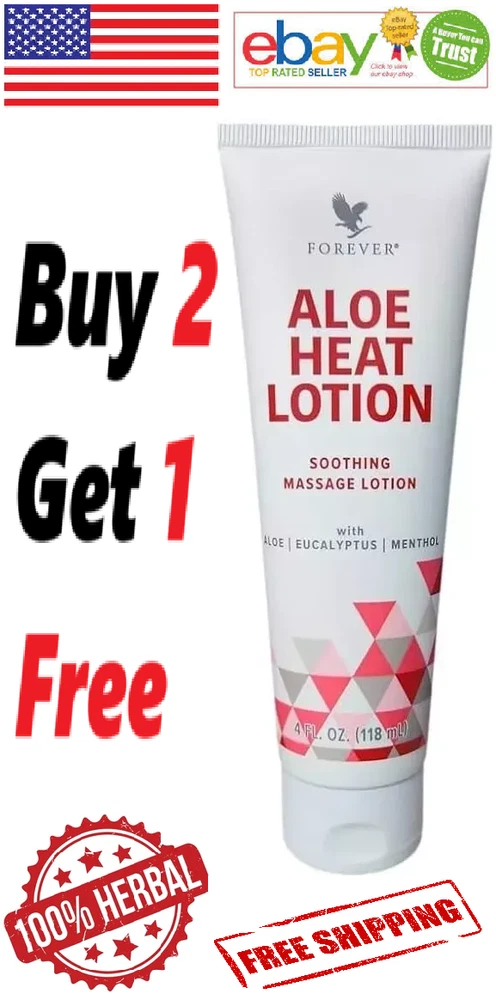 Forever Aloe HEAT LOTION Soothing Massage Lotion 100% Herbal 118ml. (FREE SHIP) After a long, active day, we all know the misery of tired, aching muscles. Now you can stretch no further than to grab a tube of Aloe Heat Lotion! This rich emollient lotion contains deep heating agents to make it the ideal massage companion for tired muscles and dry skin. Aloe Heat Lotion is a pH-balanced, lubricating lotion designed for a soothing, relaxing massage. The deep penetrating power of Aloe Vera will help soothe your muscles after sports or hard workouts! Soothing relief after sports or working out Rich, emollient formula An ideal massage lotion