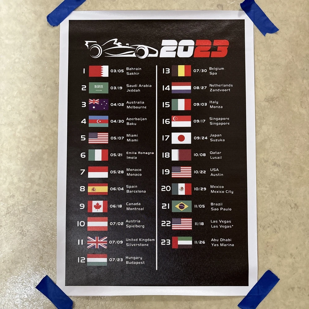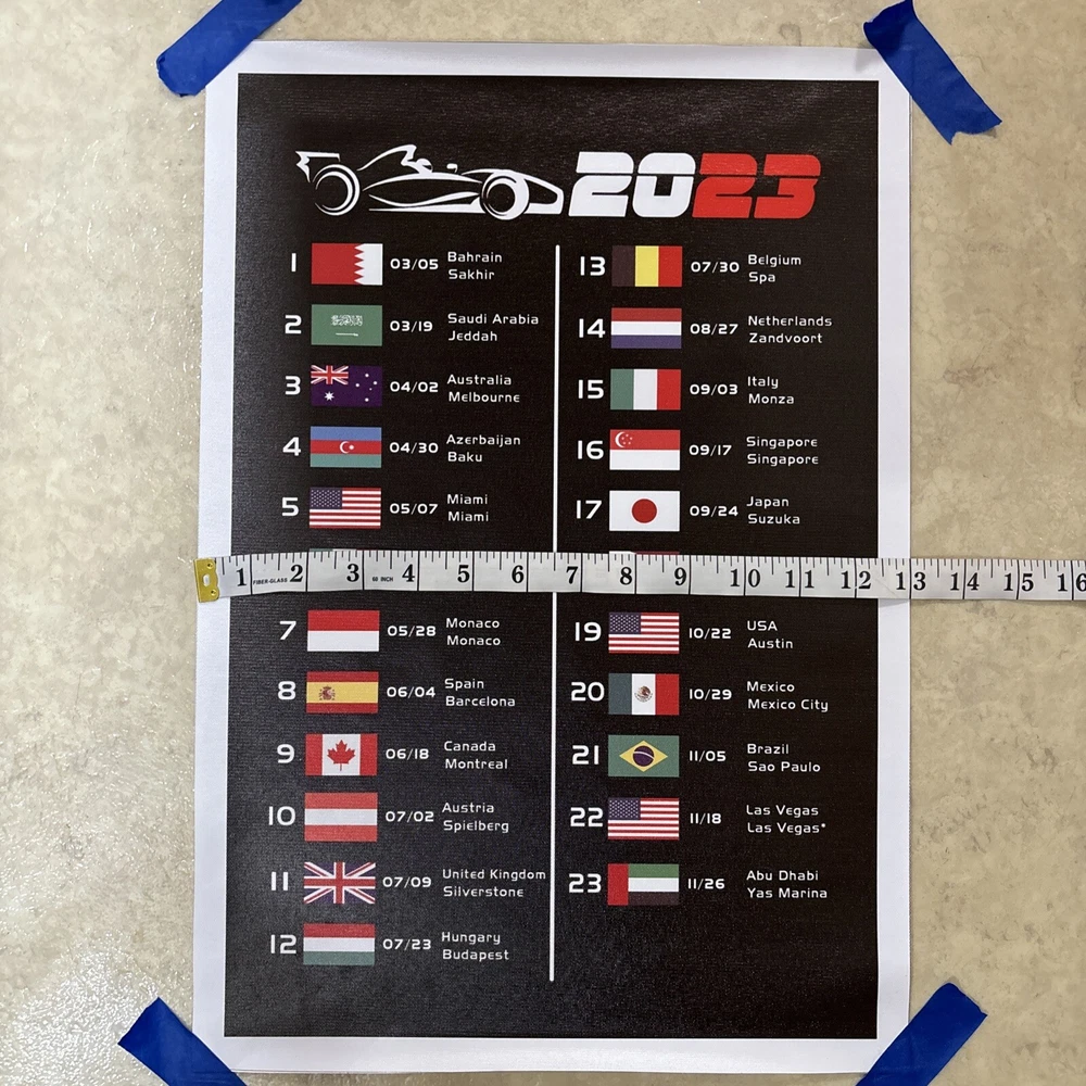Formula 1 Calendar 2023 Race Car ✅ Poster Canvas Wall Art ✅ 12x18 inch ✅ New ✅ Brand New! ✅ Look at all photos to see the condition of the item. Please feel free to ask any questions you may have. ✅ Ready to ship!