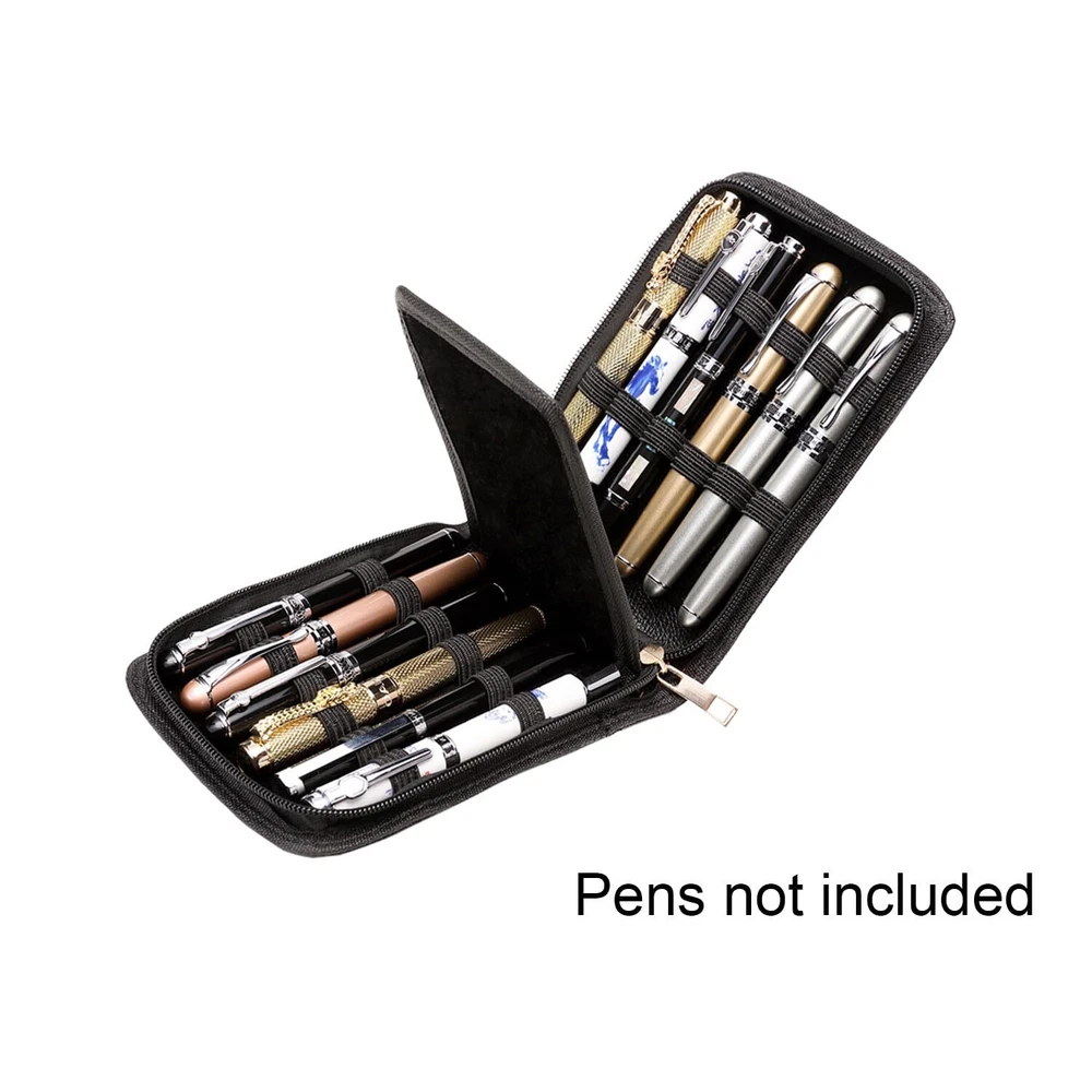 Description This pen case is a perfect solution to keep your pens neat, easy accessible and well protected. Come and buy it to keep your pens perfect in every minute! Condition: 100% New Color: Black Material: PU Faux Leather Size: 17 x 12 x 3 cm / 6.7 x 4.7 x 1.2 inch Two-layer design with 6 straps on each side (total for 12 pens) Fit Pens below 155mm Length, 20mm diameter. Also a great gift to friend, traveler, art hobbyists, artist, designer, pen collector etc. Package Includes: 1 X Pen Case High quality Pu Leather & fine Stitched Edges for long time use and easy cleaning Tensile Rubber straps hold pens securely and make it fit different sizes of pens with diameter up to 20mm (3/4inch) Two-layer design keeps your pens well organized, easy accessible and better protected Classic Black Color, Golden Zipper for convenient use. Portable design for travel, commuting or outdoor work. Pens are for demo only and not included. Designed mainly for pen collector, designer, artist, art hobbyists, traveler, etc.