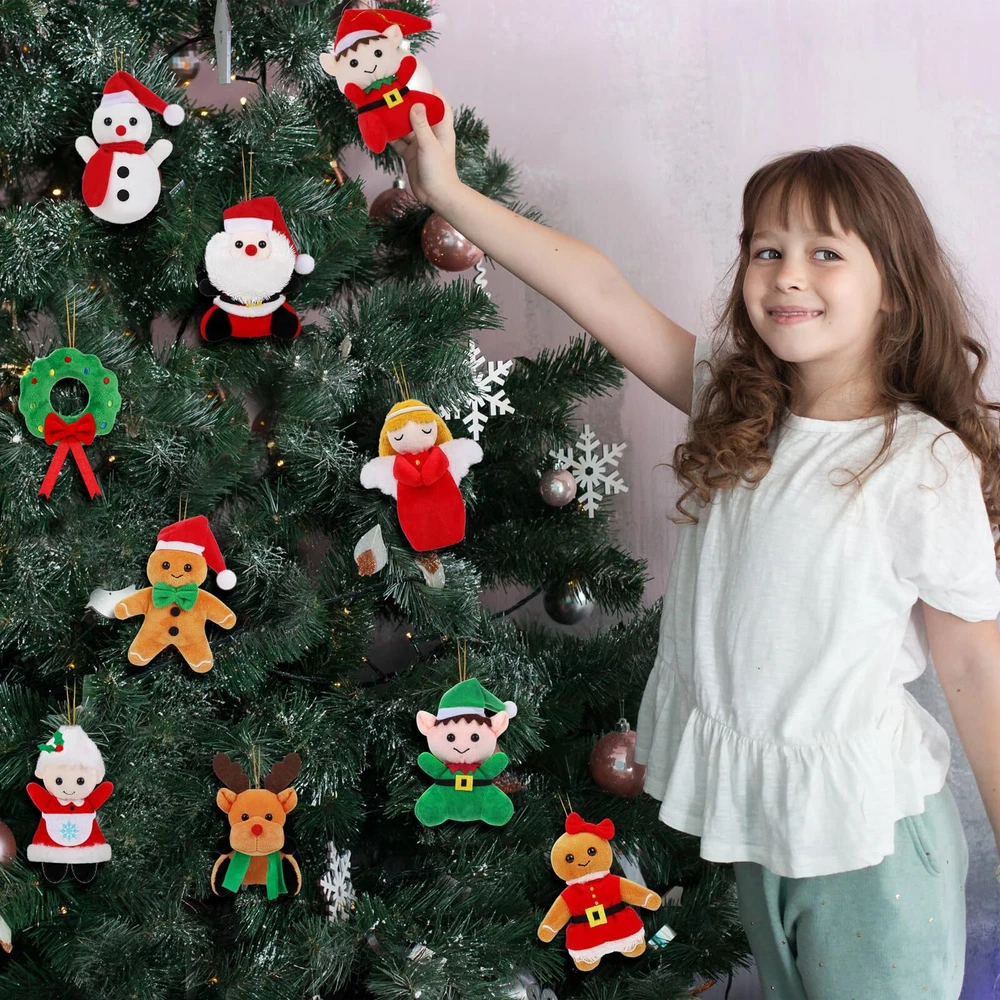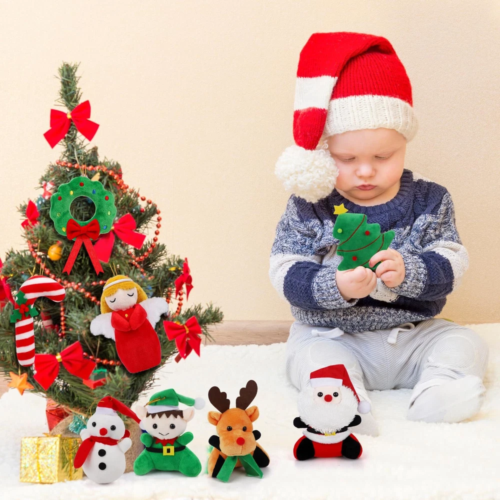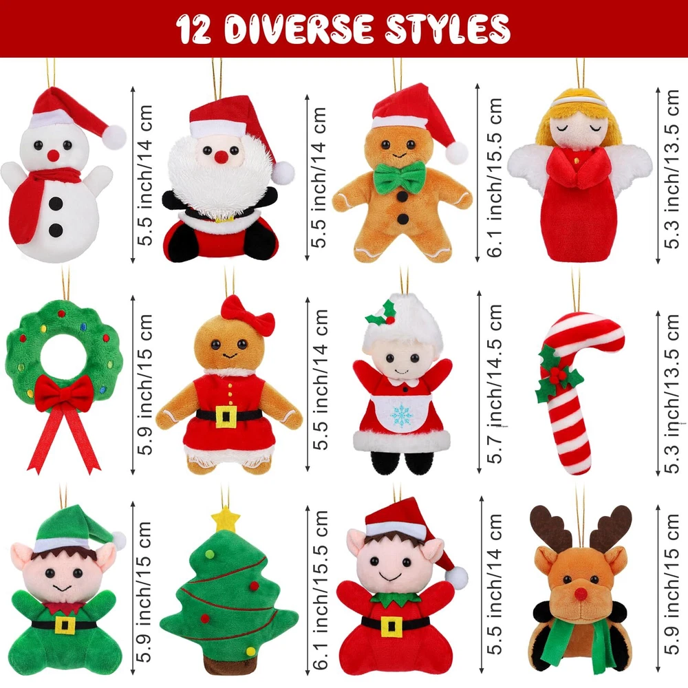 Product Parameter: Size: 4.72 inches/12 cm Color: As shown Material: PP-cotton Package Includes: 12 x Christmas stuffed animals plush toys Warm Prompts: Color differences may exist due to different displays. Our plush toys are machine washable and hand washable. You can leave them untouched for 12-48 hours until they recover after being unpacked. Packaging: includes 12 Christmas mini stuffed animals, featuring snowman, Christmas tree, Santa Claus, elk, elf, gingerbread man, Mrs. Claus, Christmas angel, Christmas wreath, candy cane, gingerbread woman, and elf woman; the classic color and unique designs will capture people's attention and fulfill all your Christmas decoration needs! Premium Material: crafted with high-quality plush fabric, stuffed with PP cotton, these mini Christmas stuffed animals plush toys are incredibly soft and comfortable to touch; crafted with exquisite sewing techniques, resulting in beautiful workmanship without any loose threads; the printed patterns are clear and fade-resistant, allowing for long-term use Adorable Design: each plush dolls is about 5.7 inches/14.5 cm, featuring classic Christmas elements and impeccable craftsmanship, and with a lively and full-bodied appearance; each plush toys comes with hanging ropes, allowing you to hang them on keys, backpacks, pencil cases, or even on the Christmas tree Versatile Use: with their adorable Christmas designs and ultra-soft plush fabric, these toys are the favorite Christmas decorations for family, friends, and young people; they are also for Christmas party gifts, Christmas photo props, classmate gift exchanges during Christmas, stocking stuffers, and gift bag fillers Warm Reminder: these plush toys are machine washable and can also be hand washed, we recommend gently cleaning the surface with detergent and a brush; upon receiving the product, it may be vacuum-sealed, please give it a gentle pat or use a blow dryer to smooth out the fur and help it quickly regain its original fluffy appearance