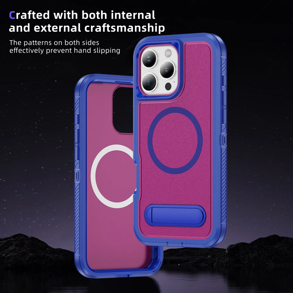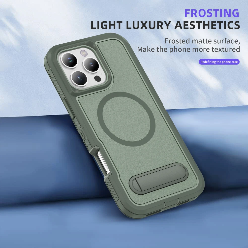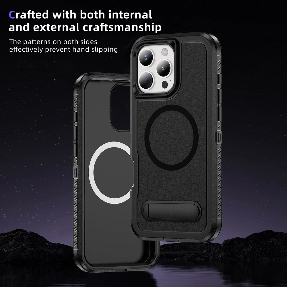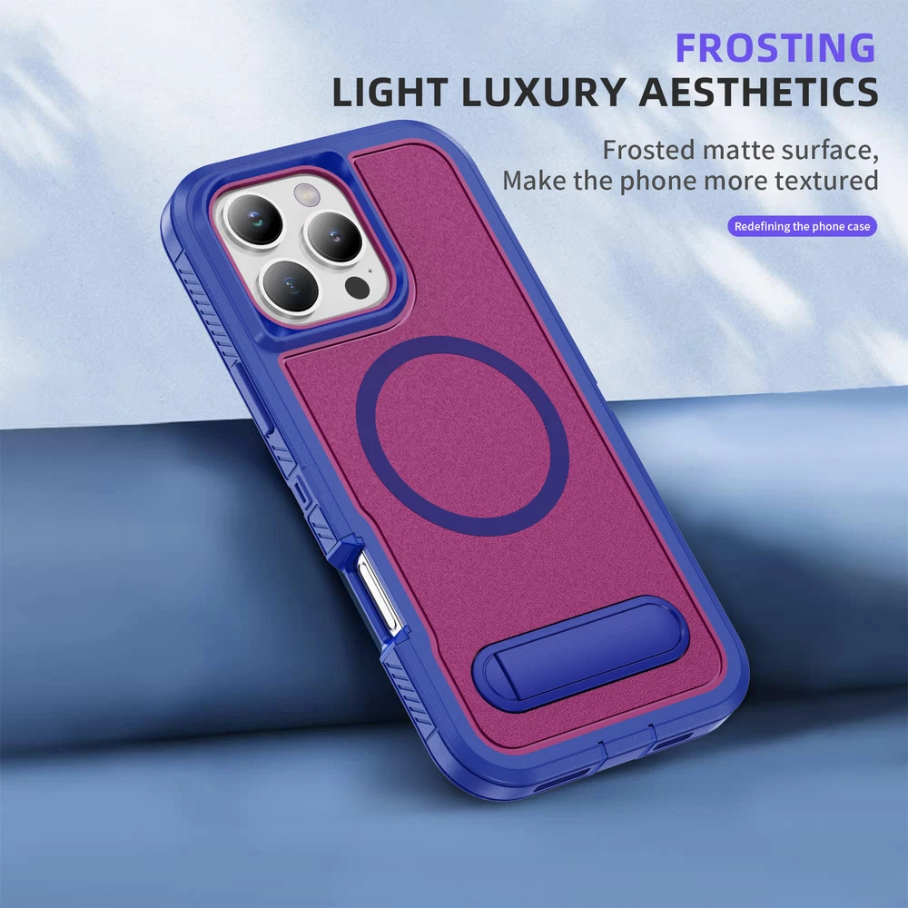 Fr iPhone 16 Pro Max 15 14 13 11 Mag Safe Case Built-in Stand + Screen Protector Key Features: Military-Grade Drop Protection: Advanced shockproof technology on all four corners and a 3-ply cushioning TPU bumper provide superior protection.Raised bezels around the screen and camera offer extra defense against dust and scratches. Enhanced Magnetic Compatibility: Compatible with Mag Safe accessories including Magnetic wallets, Car Mounts, etc, this case aligns perfectly with Magnetic chargers for a secure connection and faster wireless charging. Built-in Hidden Kickstand: The phone case is built in a hidden stand, which can hold your phone up vertically or horizontally as you wish to release your hands. Whether you're watching TV shows or video-chatting, this case with stand offers the perfect viewing angle based on ergonomic considerations to ensure optimal viewing comfort. Package: 1* Case Cover (Phone Is not included!) 1* Screen Protector