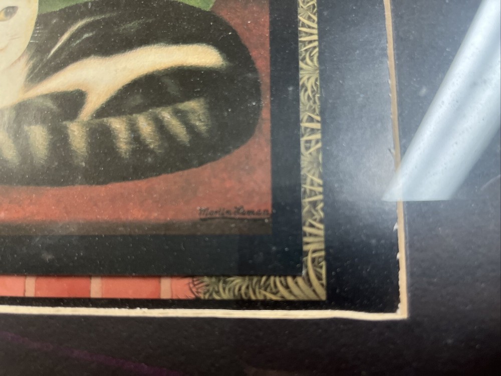 Framed Martin Leman Cat Print With Fishbowl And Cute Cat