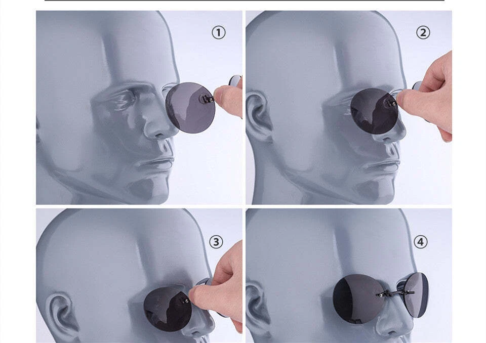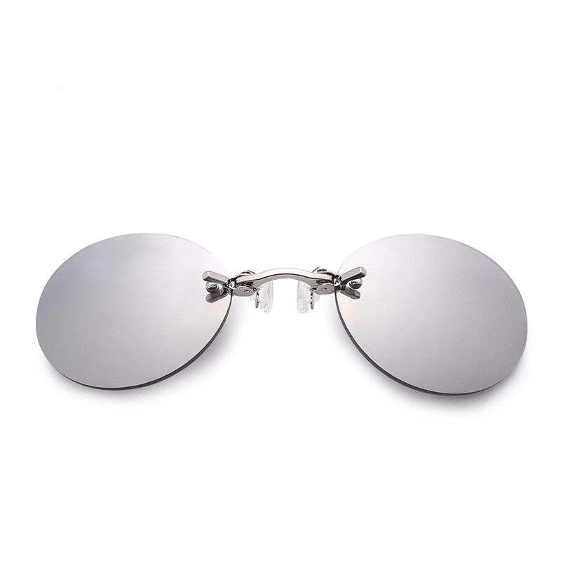 Product information: Frame material; metal Lens color: red, blue, black, colorful silver Whether to polarize: No Glasses structure: clip Glasses style: round frame Applicable scenarios: fashion wear, stage performance, party gathering Style: metal, casual, retro, hip-hop, literary, simple, European and American Applicable people: ladies, men, general purpose, adults Suitable for face: round face Color: black and gray film, mercury film, blue film, red film Style: Unisex (slightly higher nose bridge between eyes is recommended) How to wear; clamp the bridge of the nose Size Information: Packing list Sunglasses*1